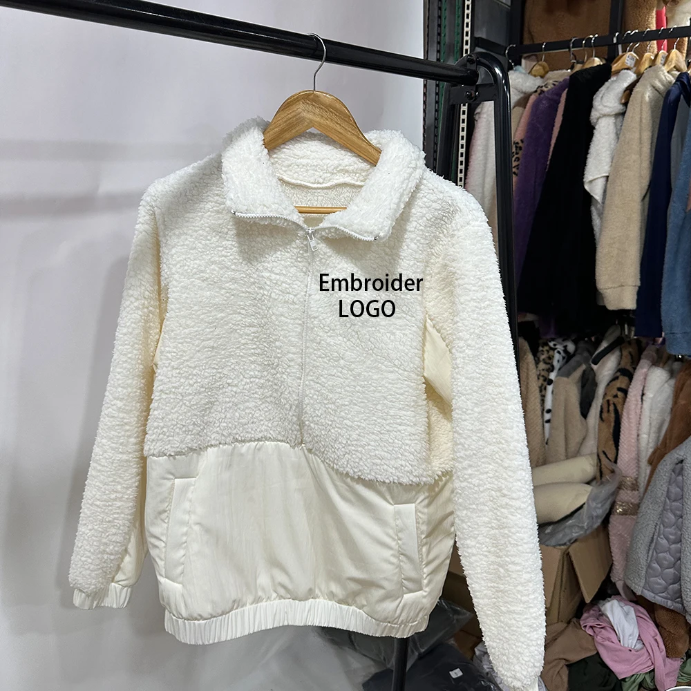OEM ODM custom embroider logo fleece hoodie high quality women half zipper hoodie fur sherpa fleece jacket