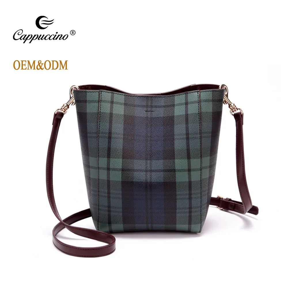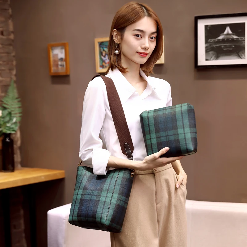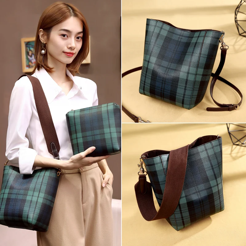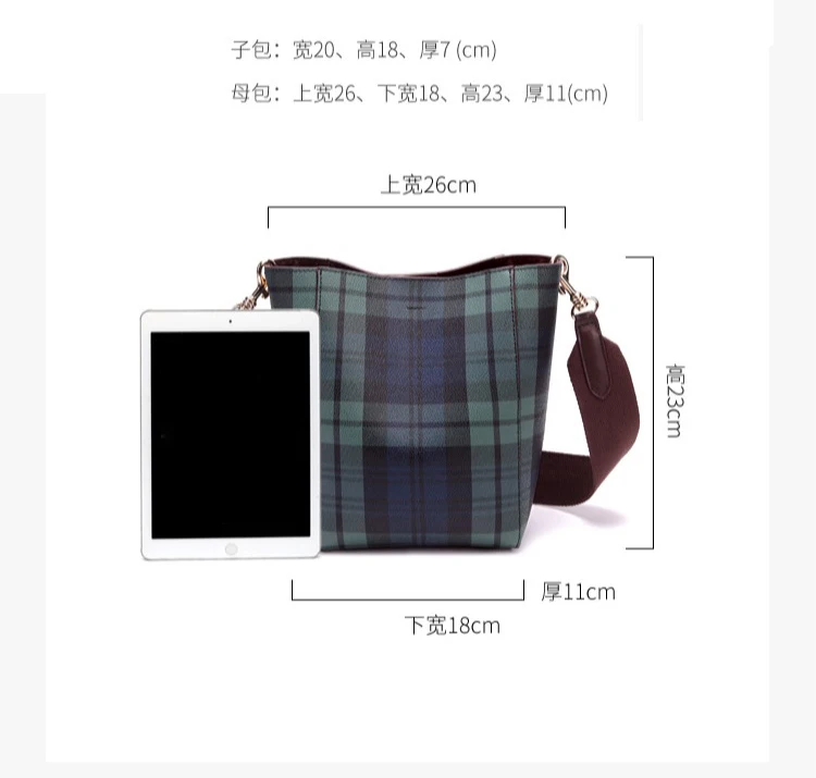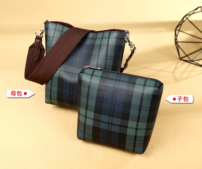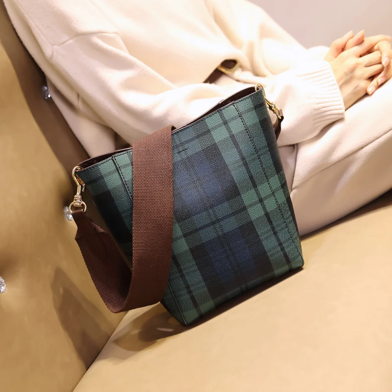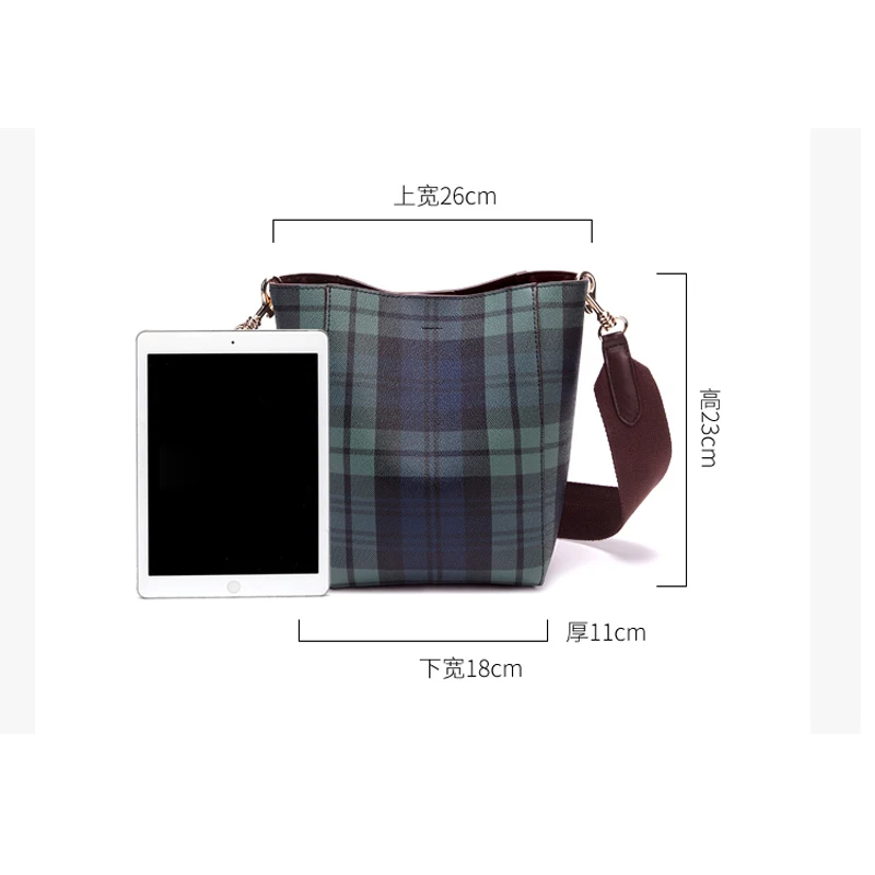 item | simple plaid messenger shoulder bucket tartan bag |