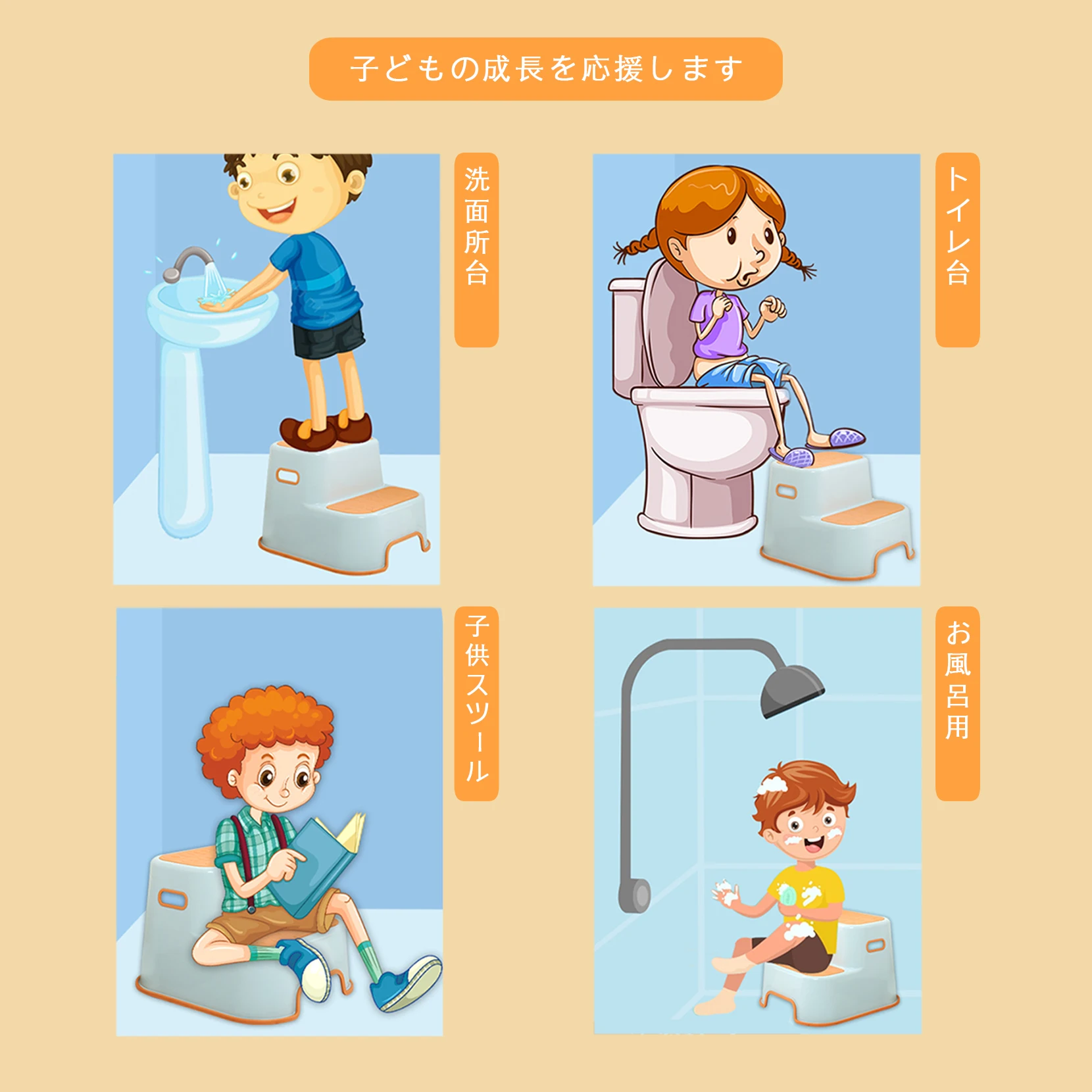 Children Double Step Stool with Handle Non-slip Surface Kitchen Bathroom Helper White |