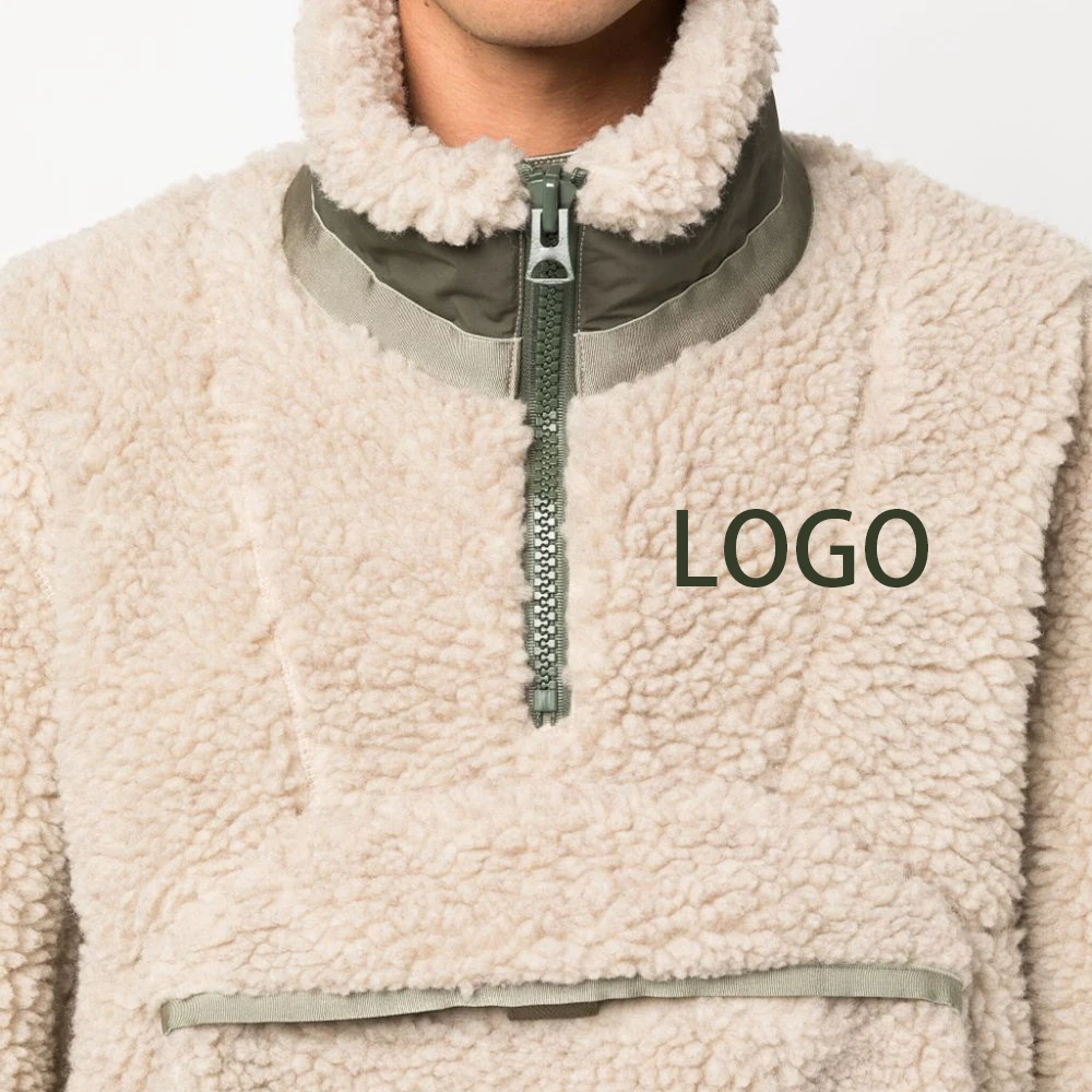 Factory custom logo winter clothes for men sherpa fleece jacket custom big pocket fleece jacket for men