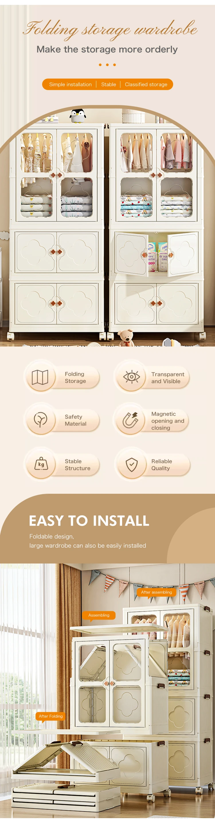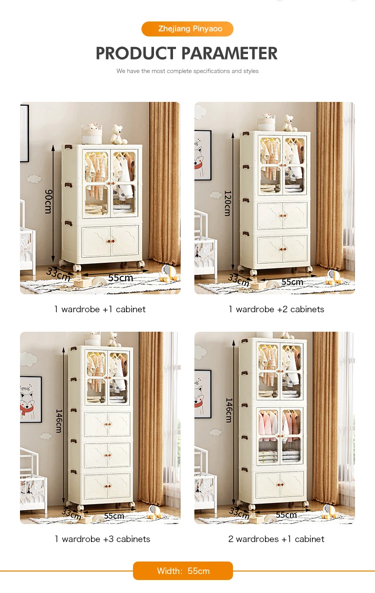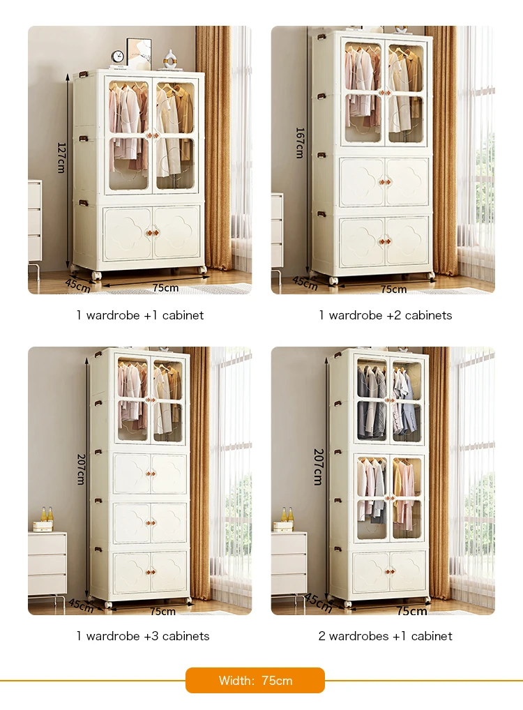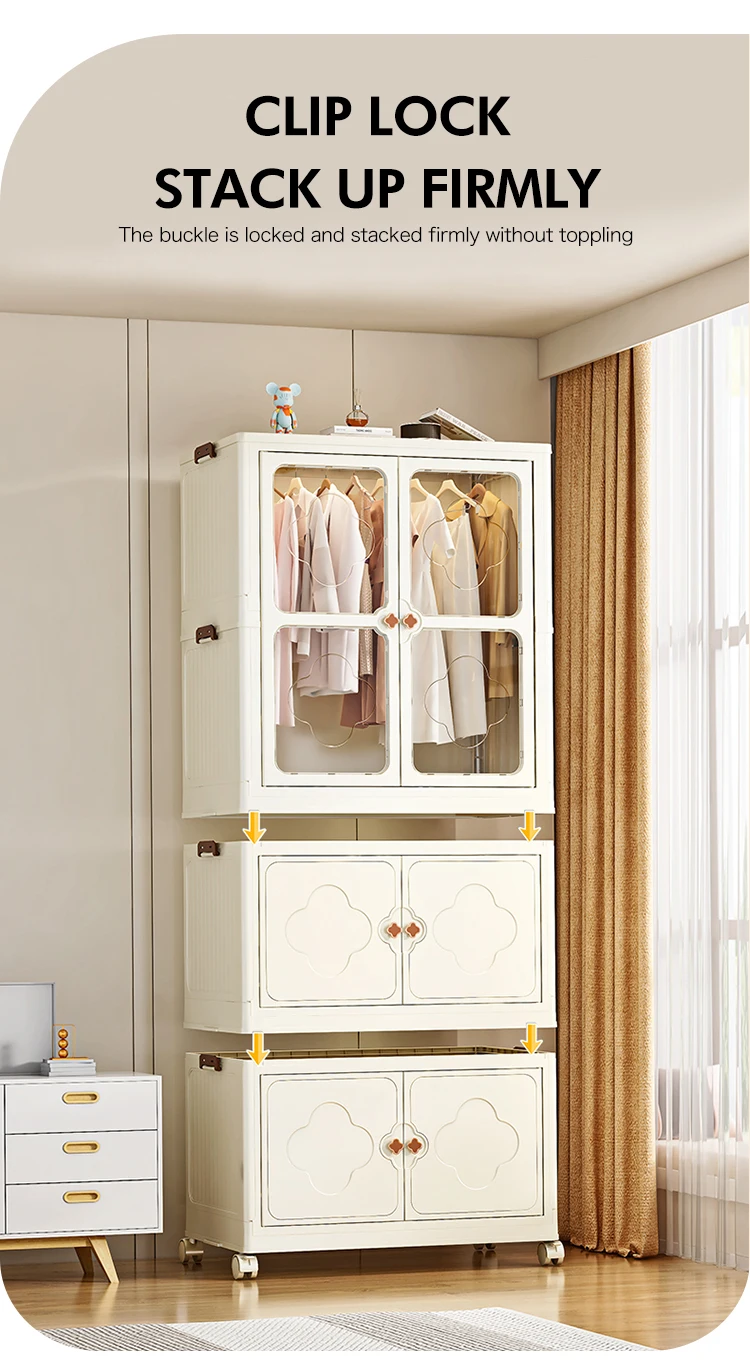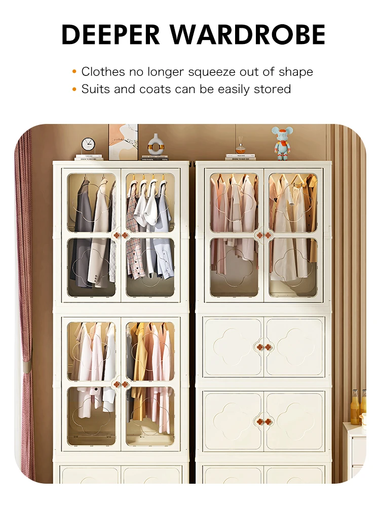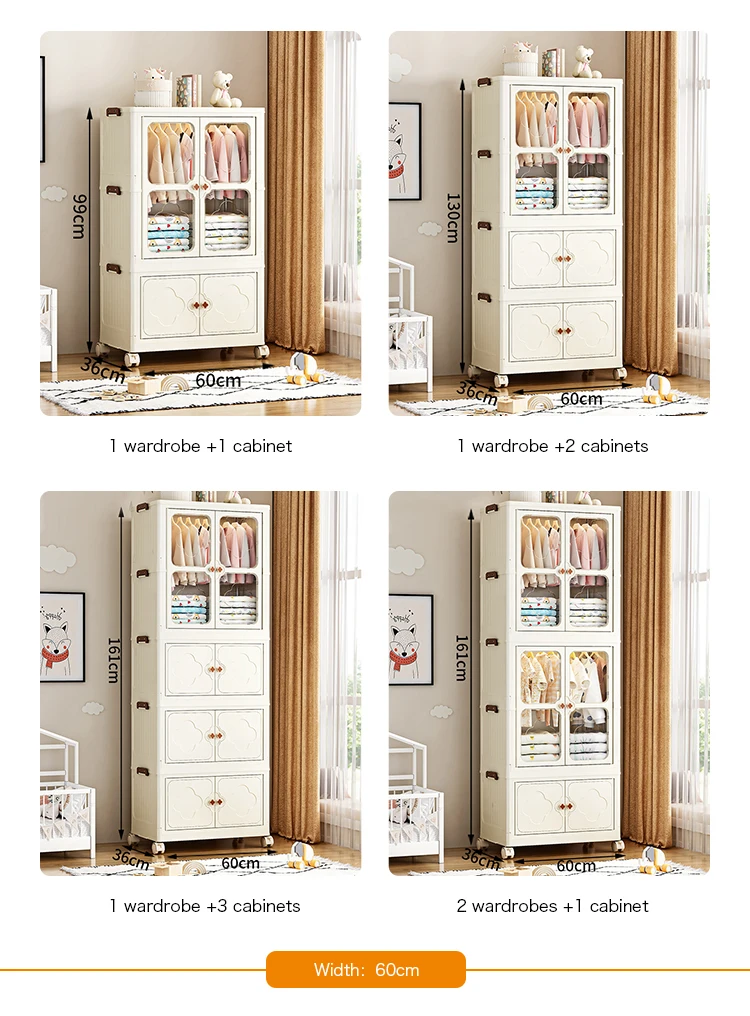 8089-2 Multifunction foldability 60cm width plastic wardrobe closet for bedroom clothes storage