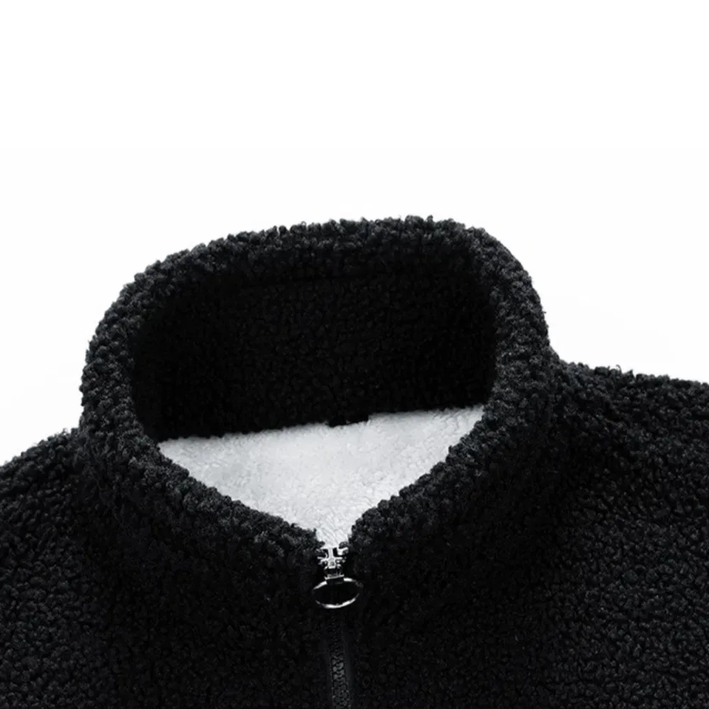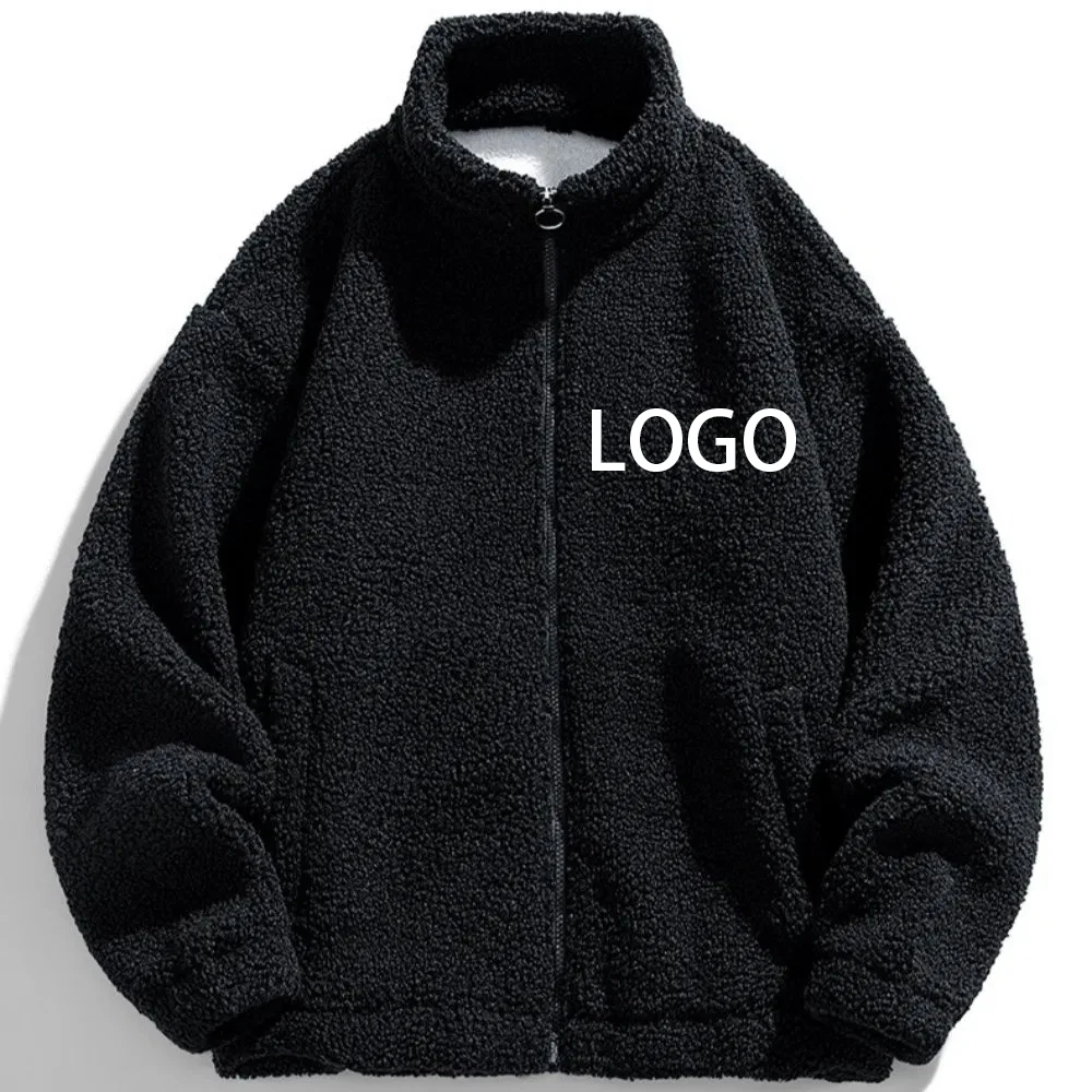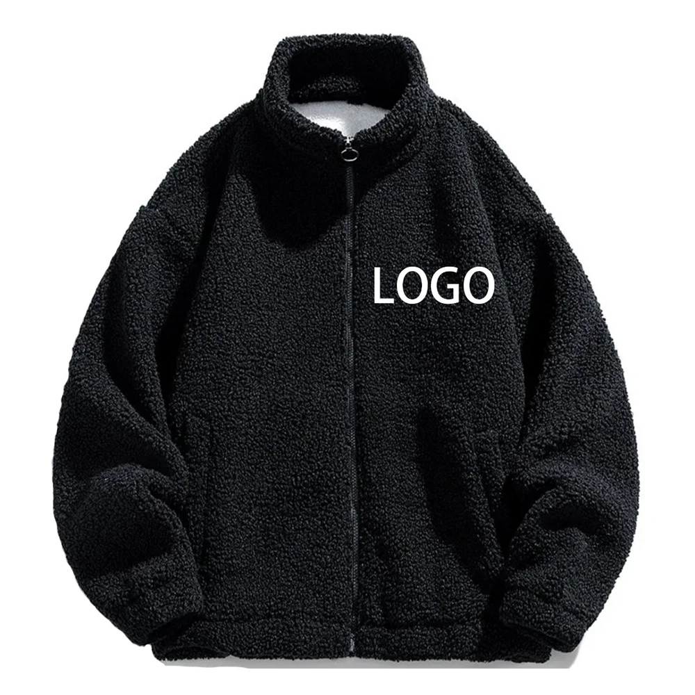 High quality custom logo winter clothes for men sherpa fleece jacket fleece to thicken custom zip up pocket fleece jacket
