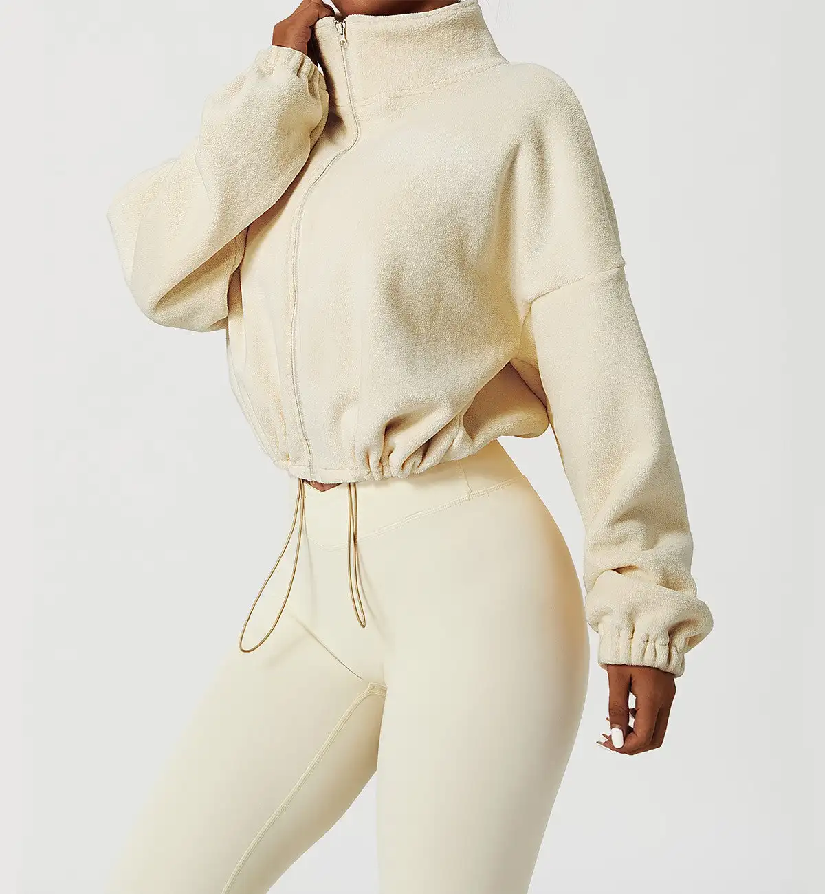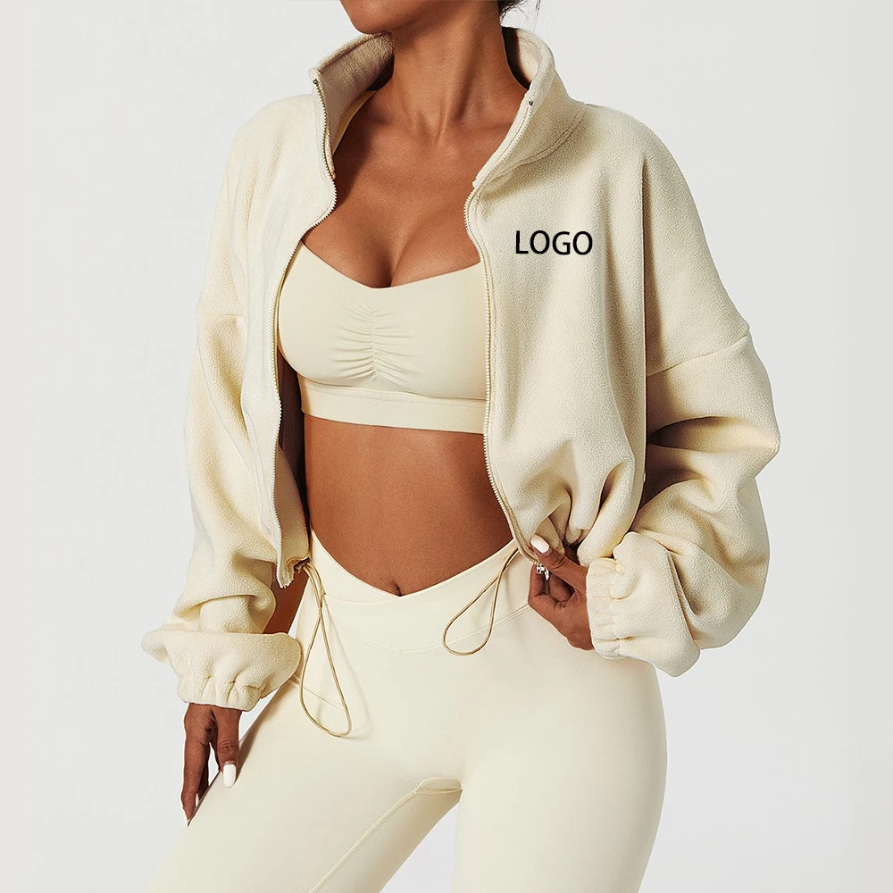 Custom Logo Fleece Jacket High Quality Contrast Color Cropped Wool Full Zip Fleece Jacket For Women
