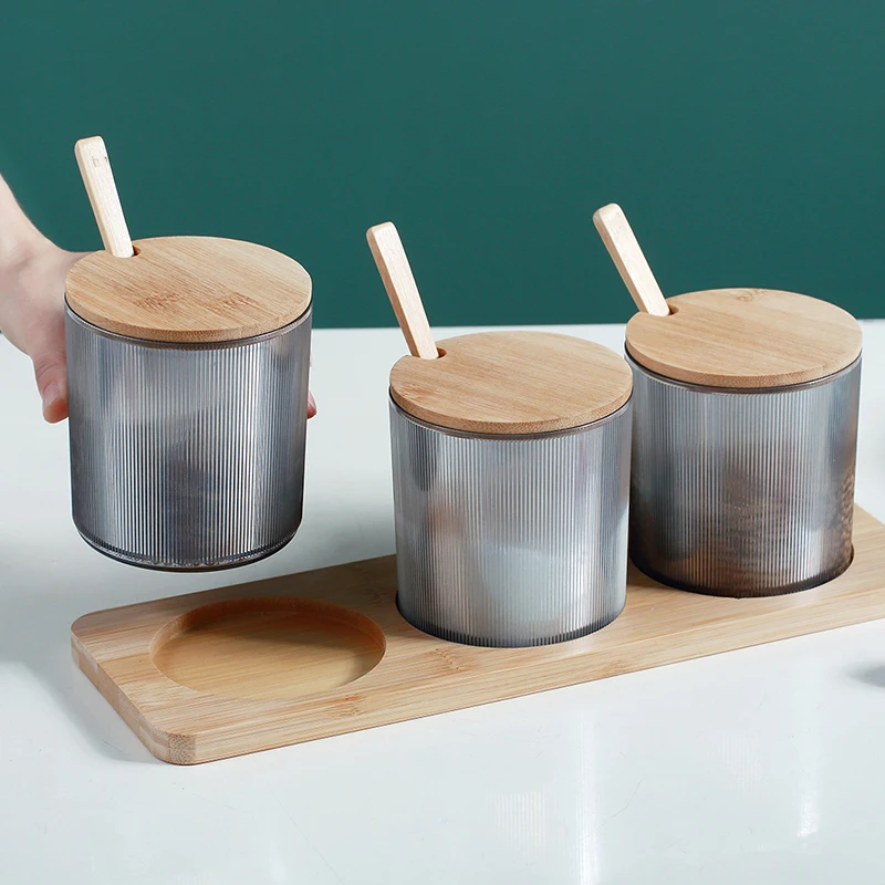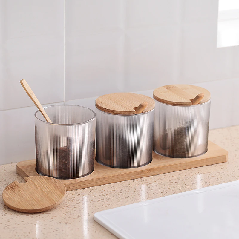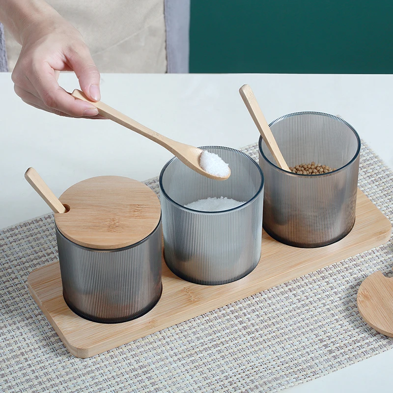 Kitchen Supplies Creativity Spoon And Tray Seasoning Pot Bamboo Cover Ceramic Seasoning Box