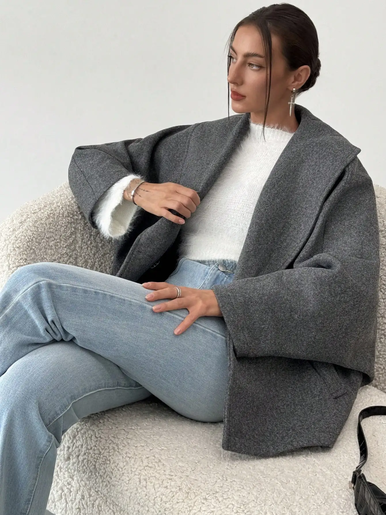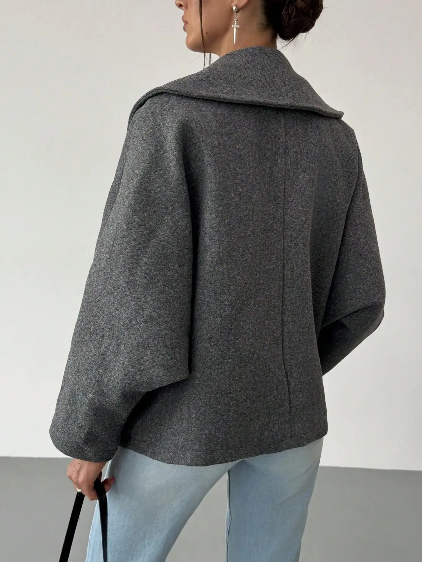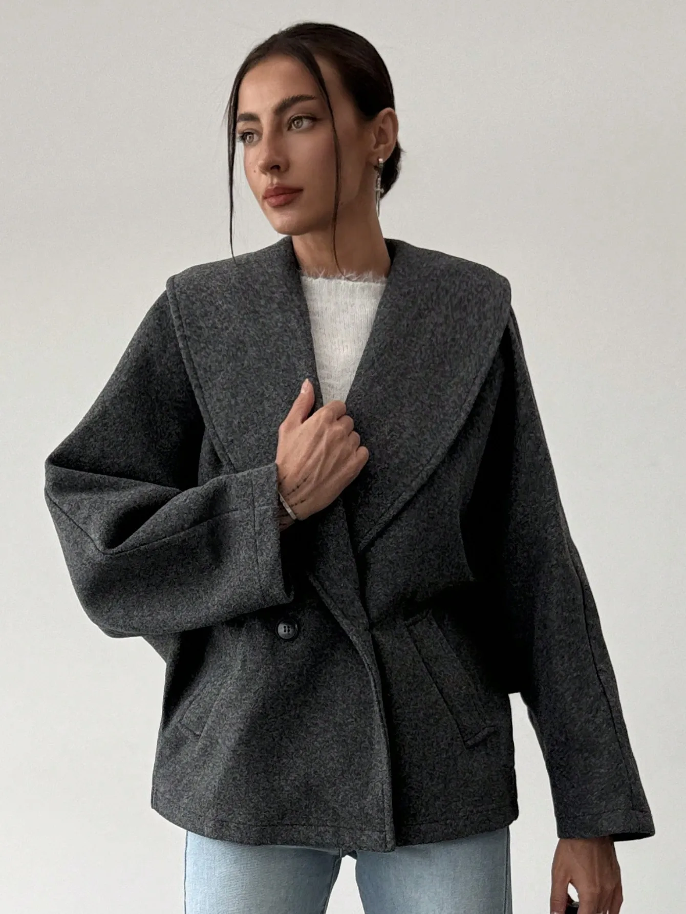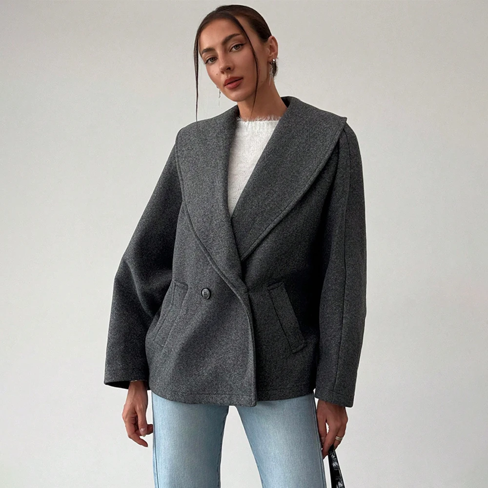 OEM ODM Custom New Arrival Gray Elegant Wool Blend Lapel Coat Warm For Fall Winter Women Jacket