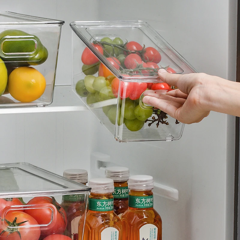 Kitchen Storage Fresh Fruit Fridge Organizer Storage Box Large Acrylic Food Containers Pet Rectangle Plastic