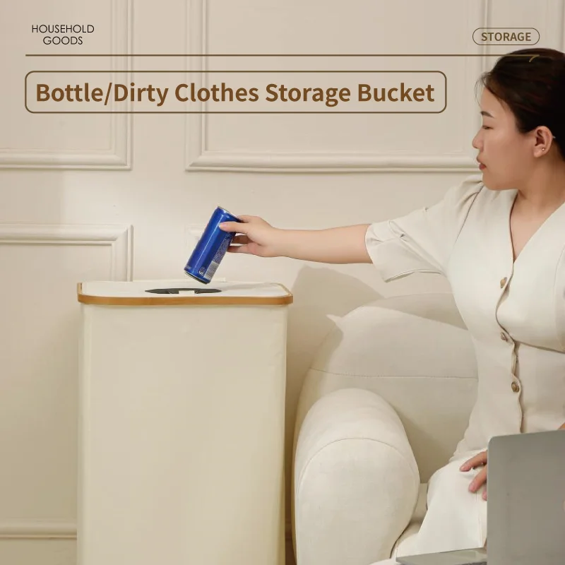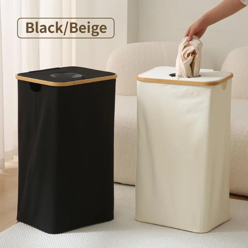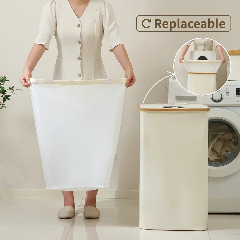 Household Bamboo Laundry Basket with Lid Bamboo Clothes Hamper Organizer with Handles and A Removable Laundry Bag For Bathroom
