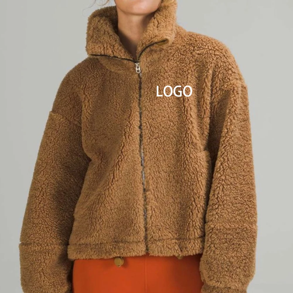 OEM ODM custom fleece jacket fuzzy winter clothes for women high quality fur coat zip up shepa fleece teddy jacket