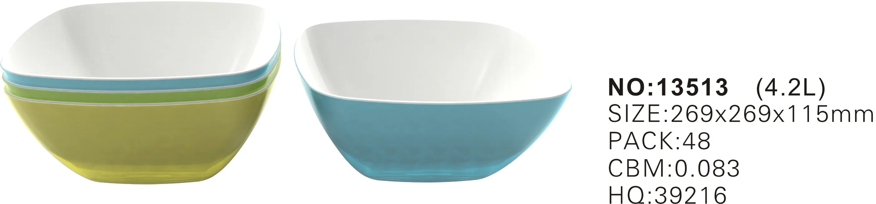 Application | 4.2L large double colored square salad mixing bowl |