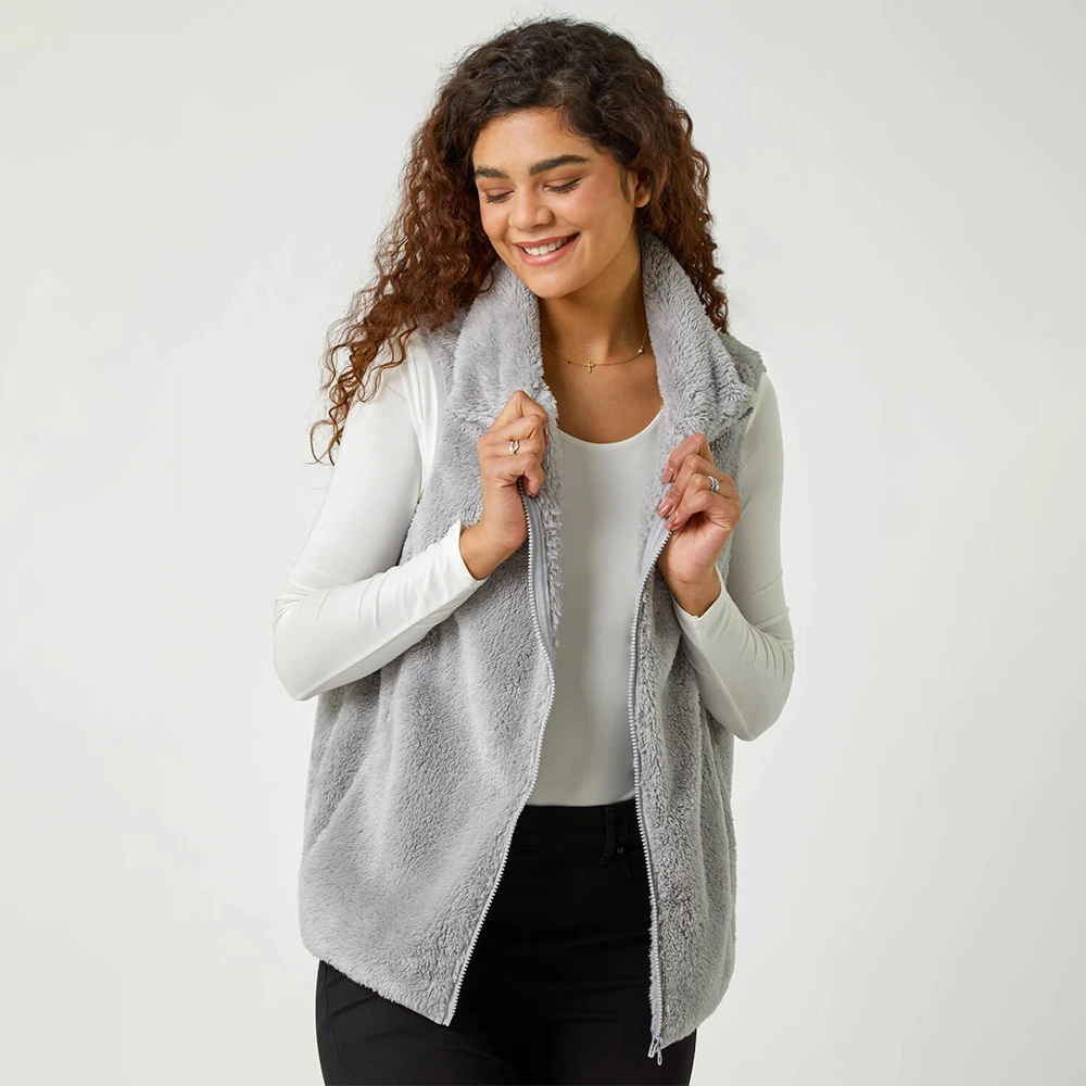 OEM ODM Custom winter clothes for women vest fur winter thick warm pocket red plaid coat jacket fleece vest