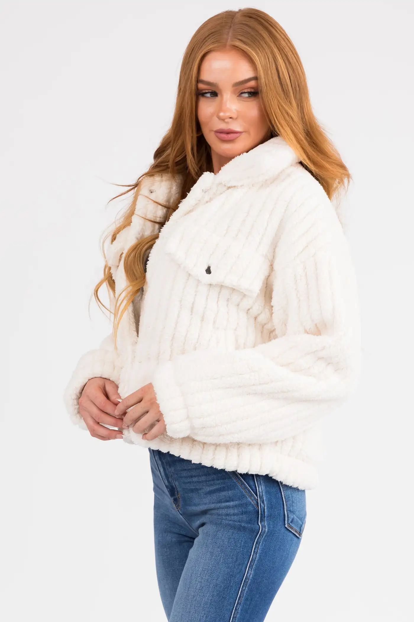 OEM ODM custom high quality fleece jacket fuzzy winter clothes for women fur coat button shepa fleece jacket