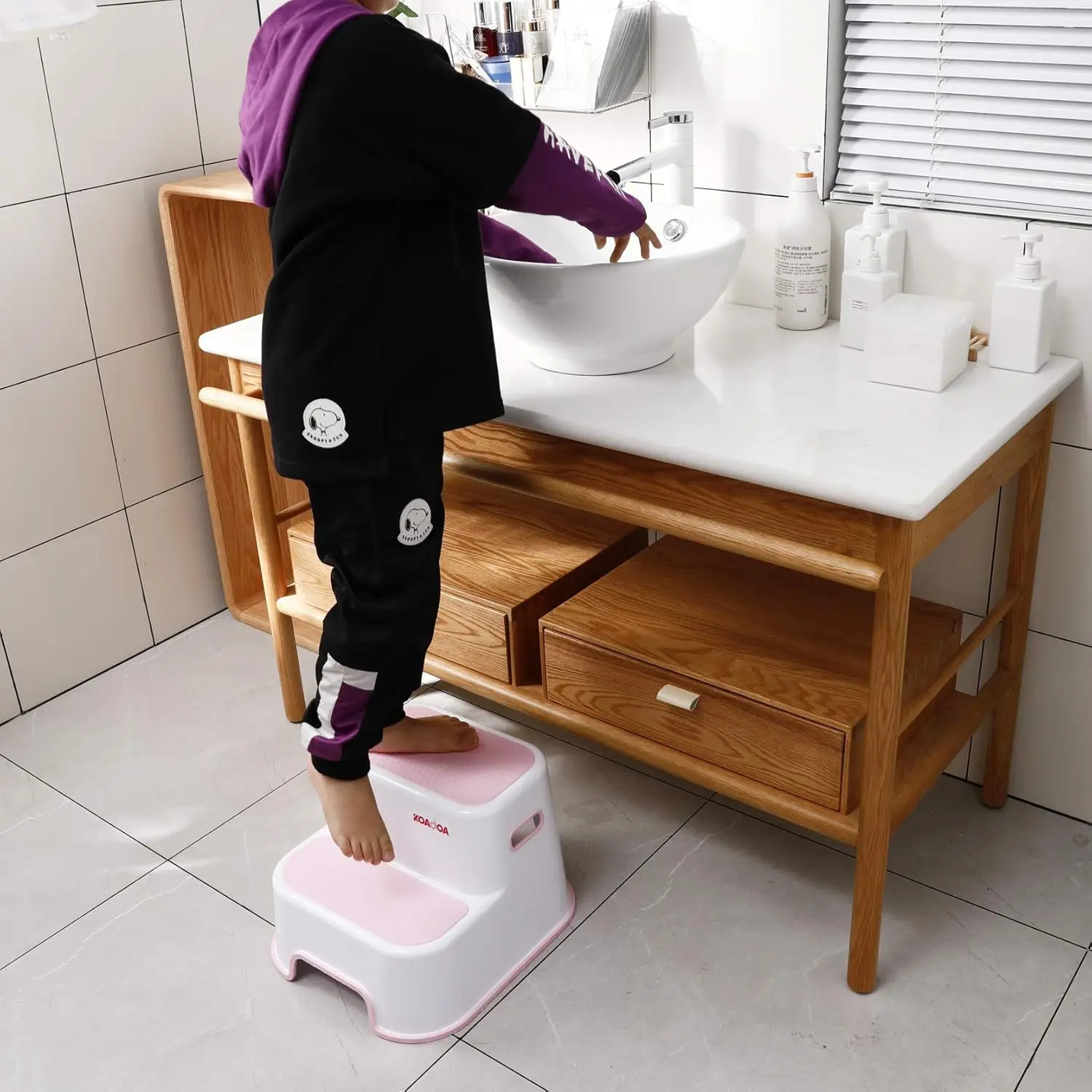 Plastic Step Stool with Handle Double Layer Non-slip Surface Kids Bathroom Kitchen Use |