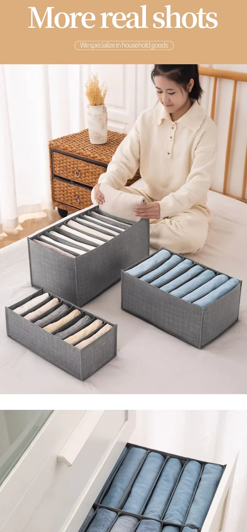 Hot Sale Foldable Non-Woven Fabric Organizer Modern Rectangle Wardrobe Jeans Storage Box for Clothes and Toys