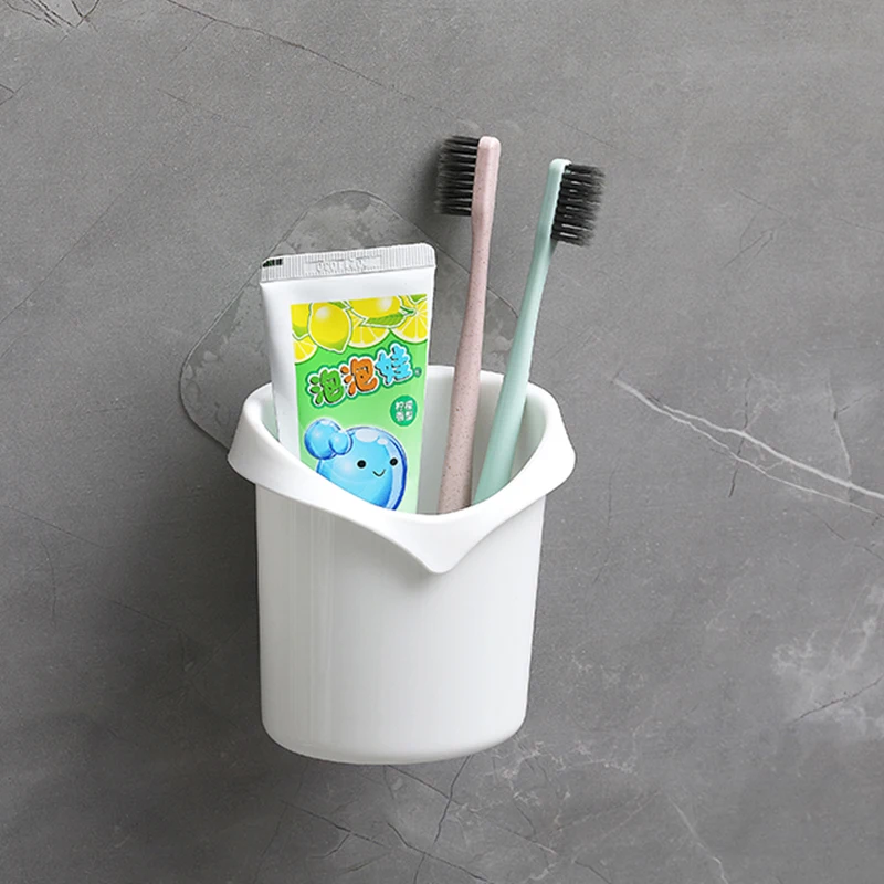 Wall Mounted Storage Rack Plastic Cup Holder Removable Multifunctional Bathroom Toothbrush Organizer Rack