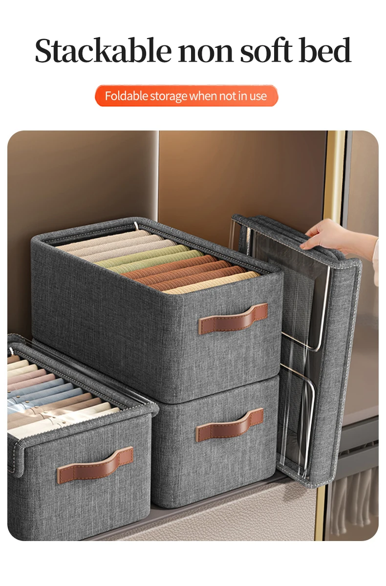 Upgraded Foldable Fabric Drawer Organizers for Clothes and Shoes Wardrobe Organizer with Jeans Handle for Closet Management