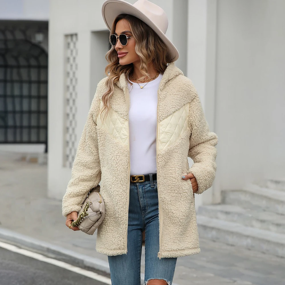 In Stock Wholesale OEM ODM Custom Winter Clothing For Women Full Zipper Fur Coat Hooded With Pocket Sherpa Fleece Jacket