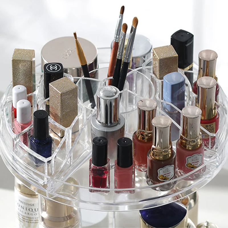 Acrylic Cosmetic Storage Box Makeup Organizer Clear 360 Degree Rotating Plastic Organizador Maquillaje Adjustable