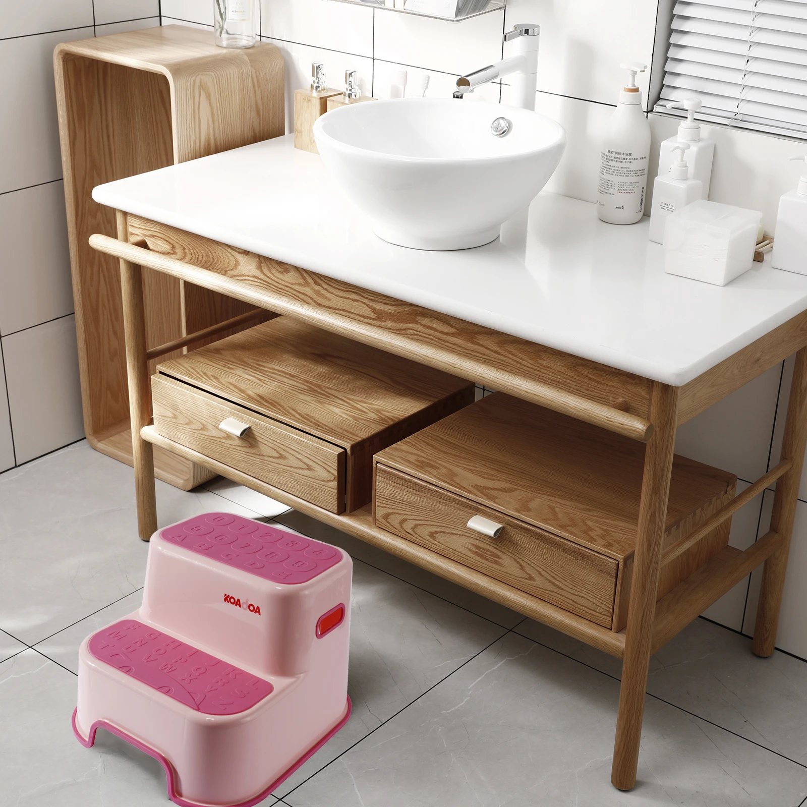 Baby Kitchen Step Stool Double Height Plastic Non-slip Surface with Handle PP Material |