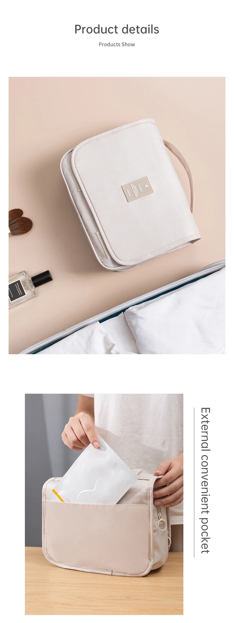 Hanging Toiletry Bag Hook Makeup Cosmetic Bag Case Pouch Multifunctional Foldable Travel Organizer Package