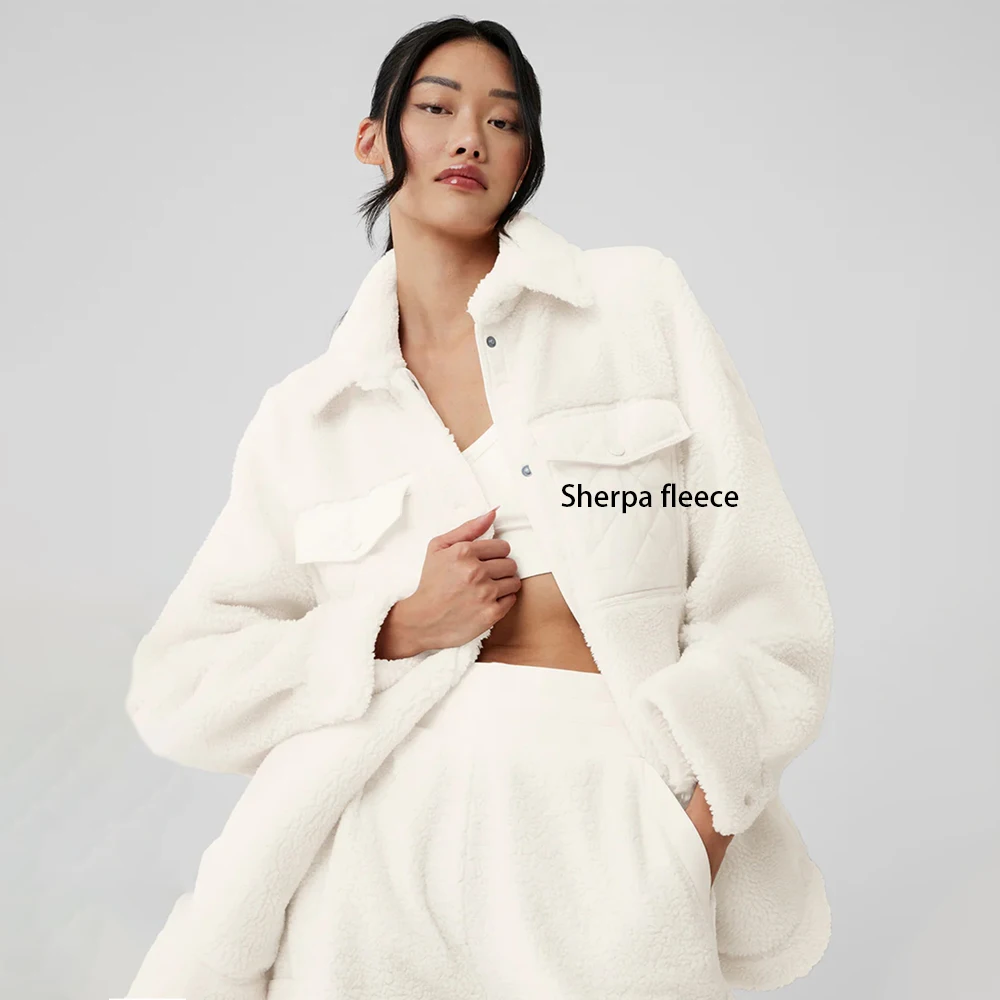 Custom sherpa jackets winter clothes for women fur coat pocket high quality pocket fuzzy sherpa fleece fit jacket