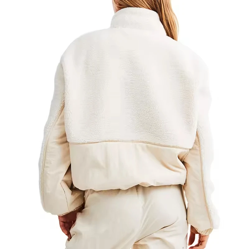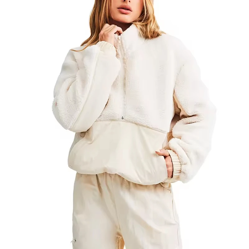 Custom sherpa half jackets winter clothes for women fur coat pocket high quality fuzzy sherpa pocket fleece jacket