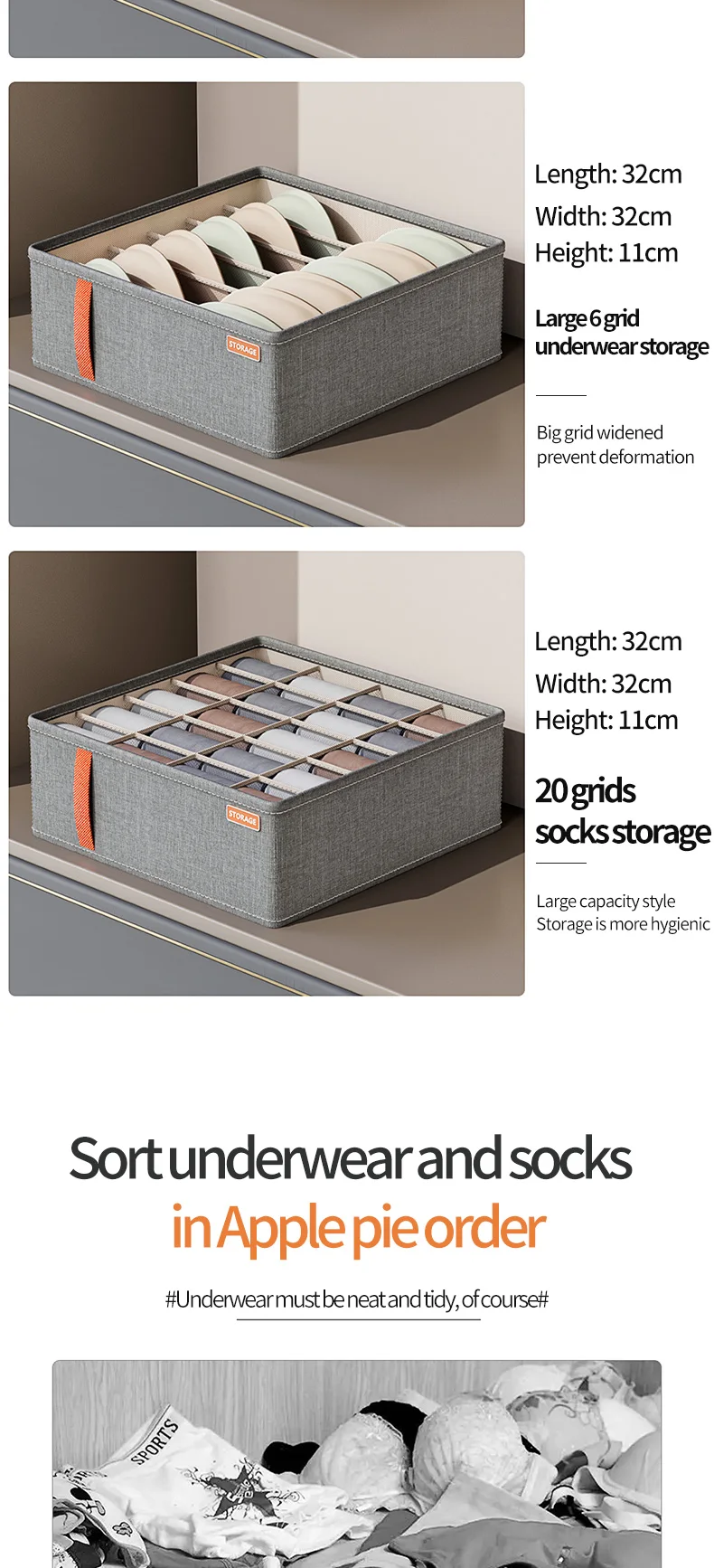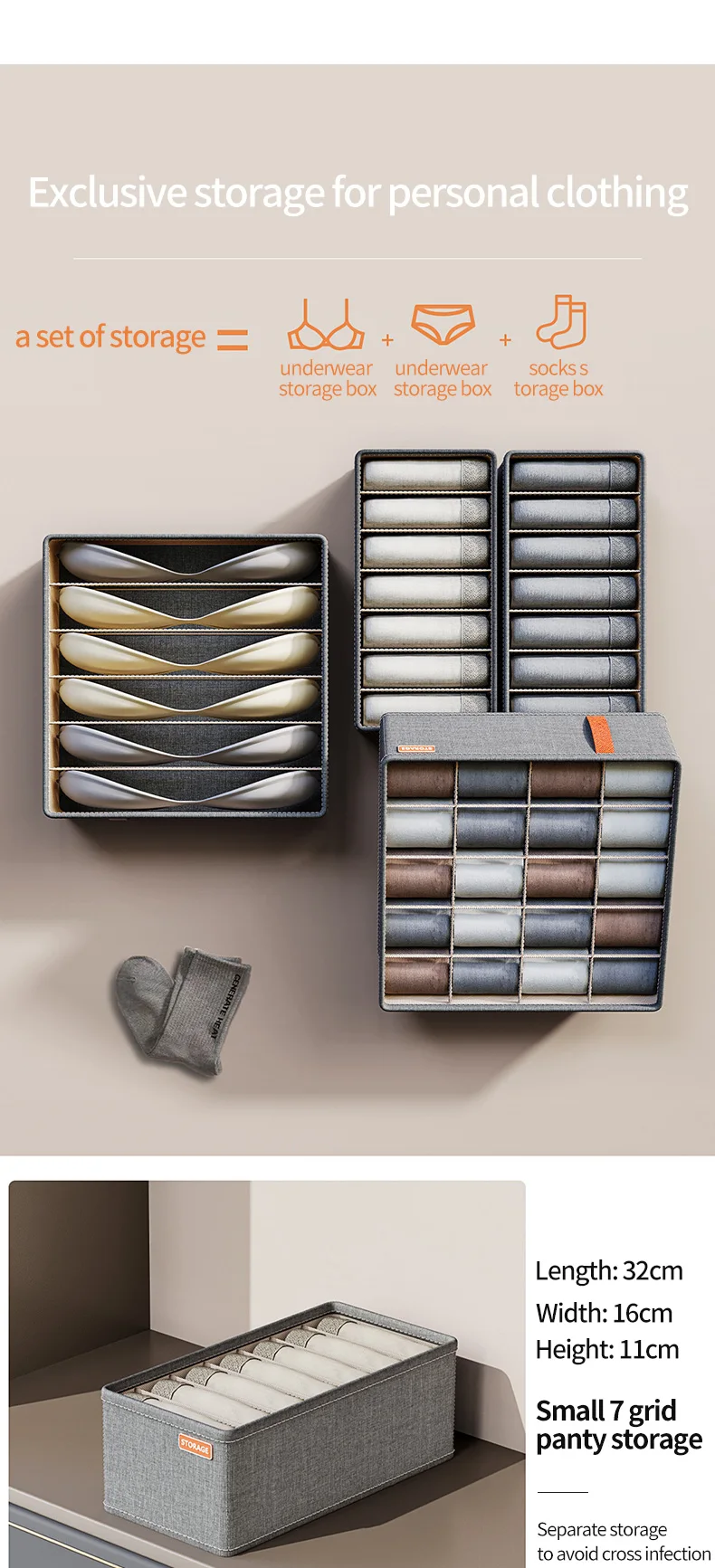 Hot sell wardrobe underwear organizer foldable panties socks bra storage box drawer underwear storage bins
