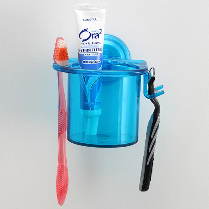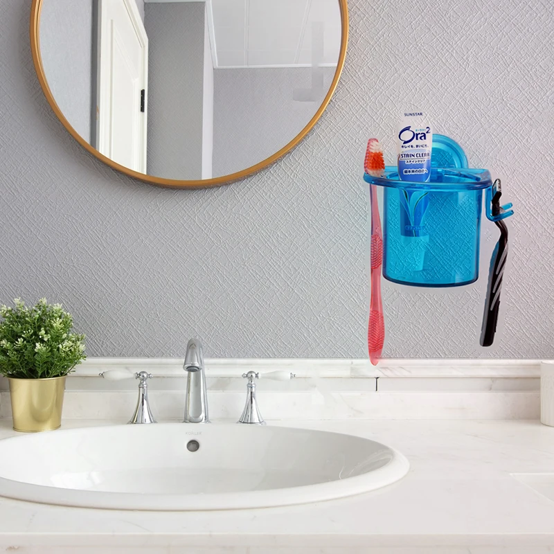 Plastic Bathroom Wall Shelf Suction Mounted Toothbrush Rack Shower Storage Shelves Holder