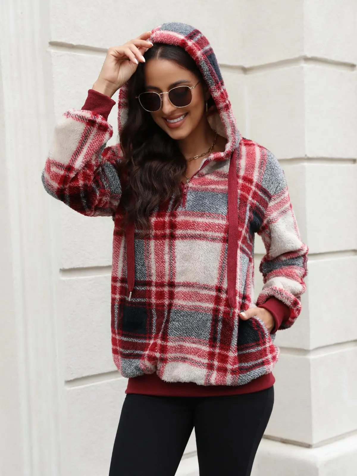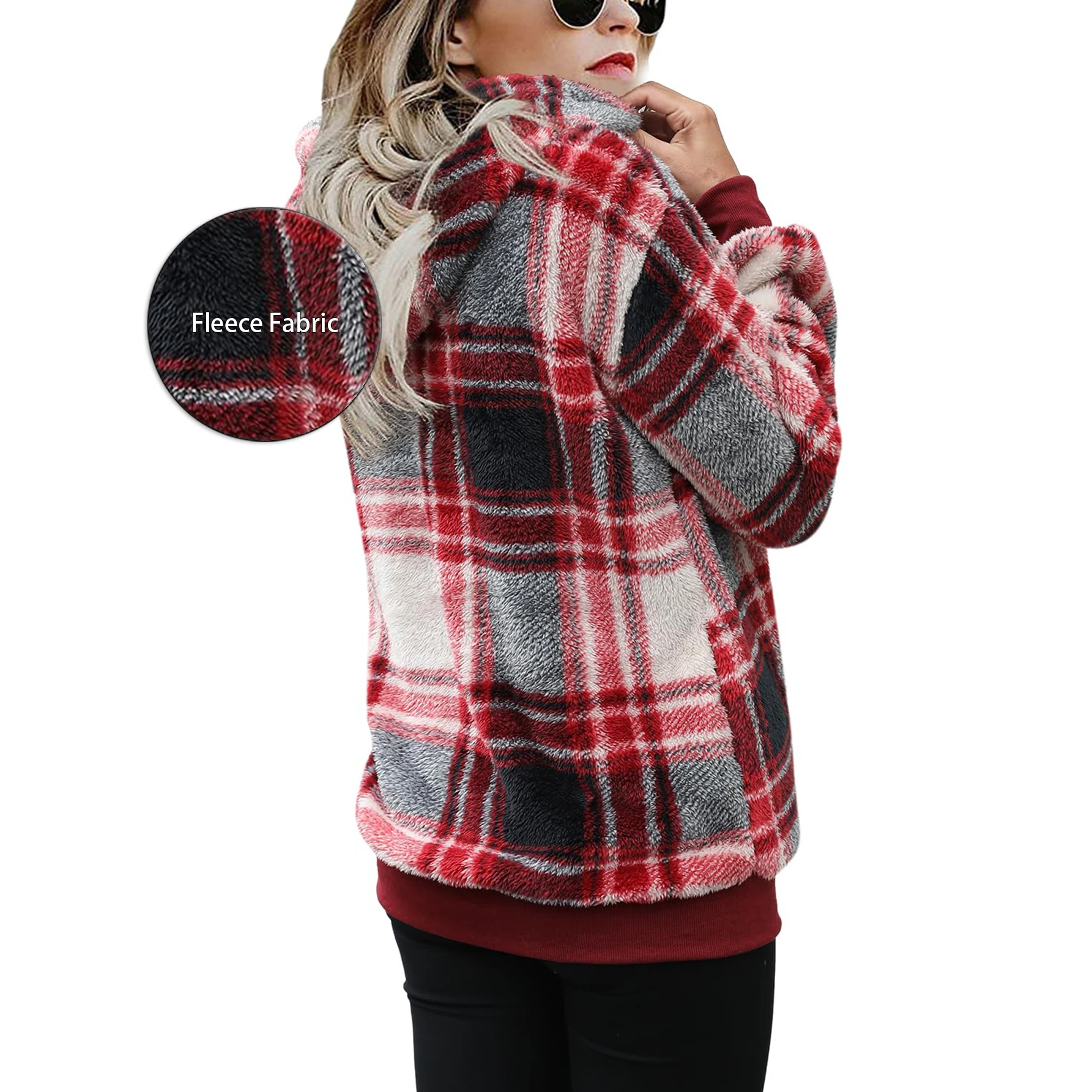 OEM ODM Custom Sherpa Fleece Jacket Winter Clothes For Women With Pockets Hoodie Fuzzy High Quality Fleece Hoodie
