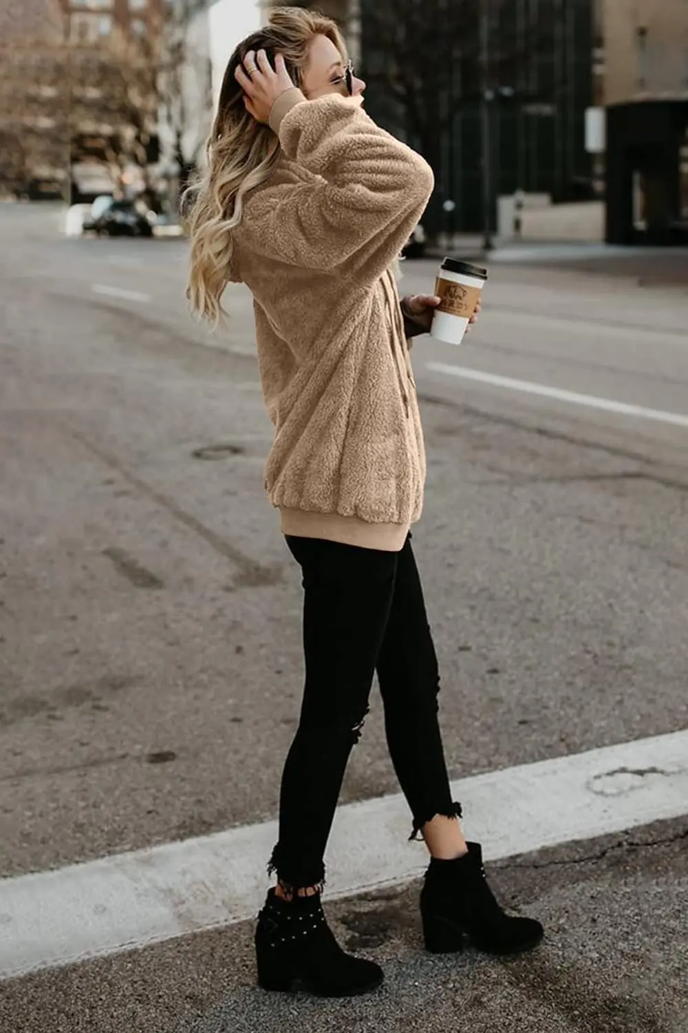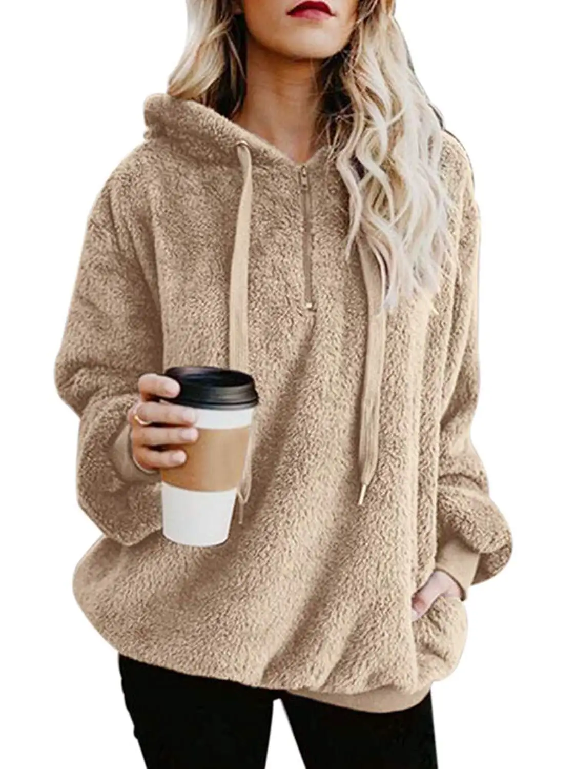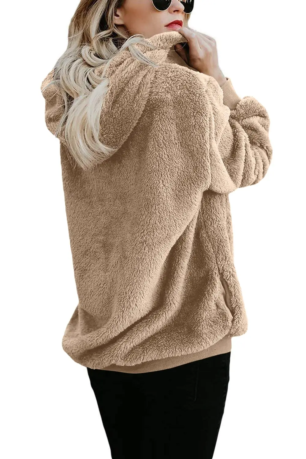 Custom High Quality Winter Clothes For Women Hoodie Fuzzy Fleece Pullover With Pockets Sherpa Fleece Jacket Teddy Jacket