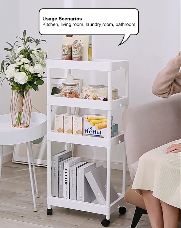 1 | Name | Adjustable plastic 4-tier wheels rotating salon hair color tube flower spray bottle narrow space storage holders & racks |