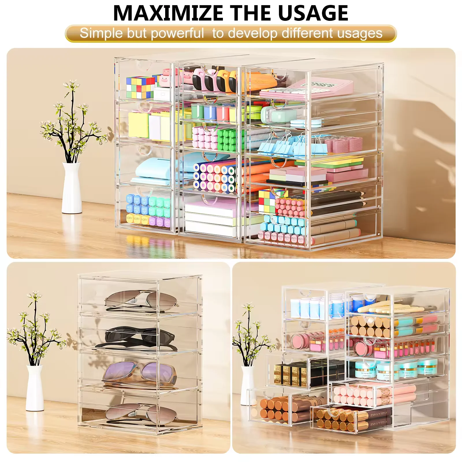 13 Drawers Makeup Organizer Plastic Storage Drawers Office Accessories Storage Boxes & Bins Container