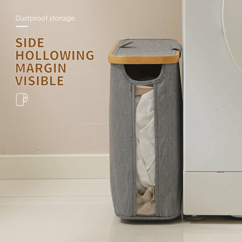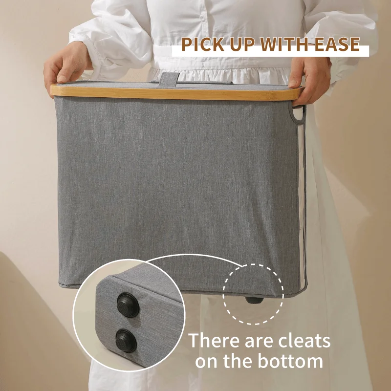 Waterproof Oxford Fabric Storage Basket Folding Sundries Clothing Basket with Bamboo Handle