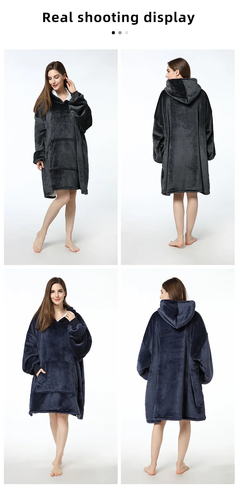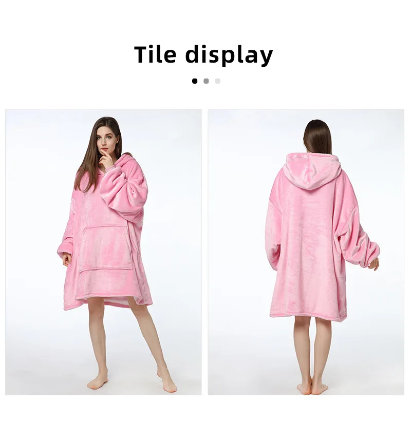 OEM Custom Wearable Blanket Hoodie Zipper Cozy Warm Oversized Hoodie Sweatshirt Blanket With Pockets For Adults