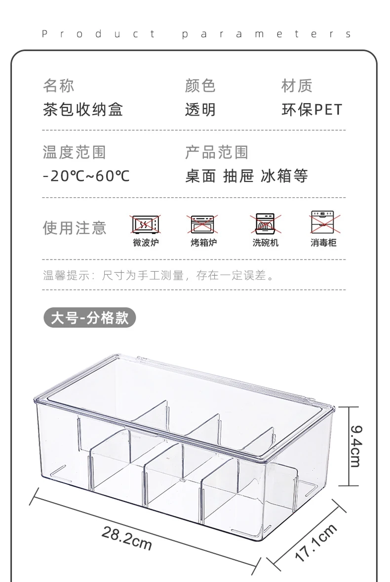 Hot Sale Transparent Plastic PET Living Room Small Linton PET Tea Bag Storage Box