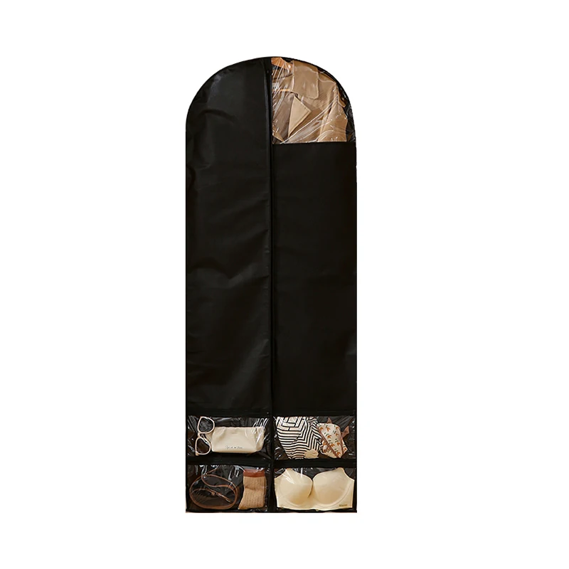 Hanging Clothes Suit Cover Bag Custom Logo Printed Eco-friendly Non Woven Reusable Fabric Garment Bag With Zipper Pockets