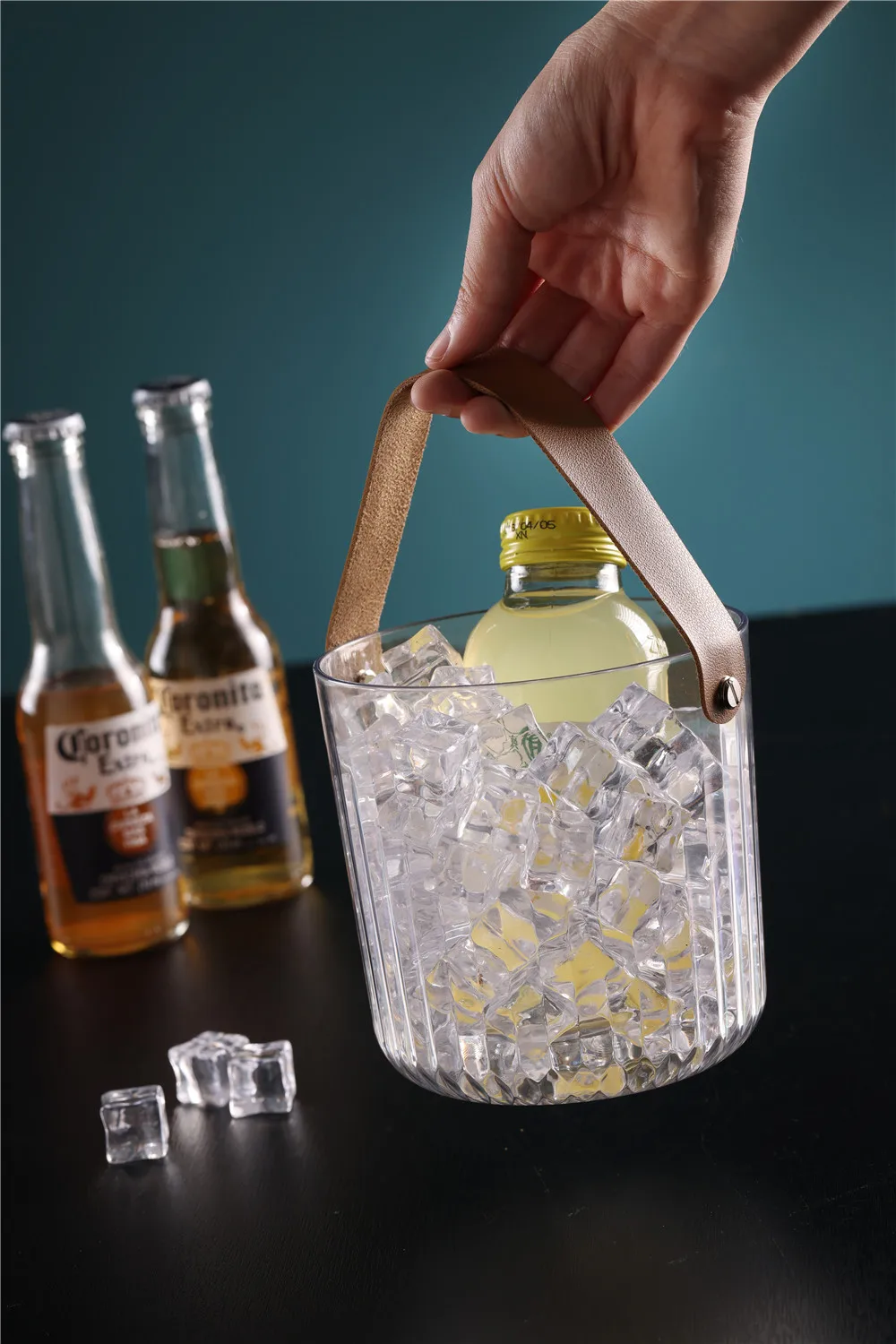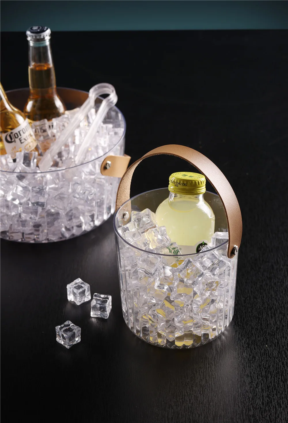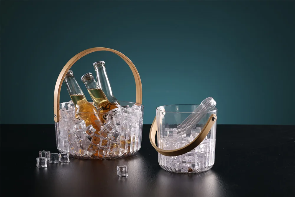 Large Portable Acrylic Wine Buckets Plastic Clear Beer Ice Bucket Multifunctional Storage Buckets With Leather Handle