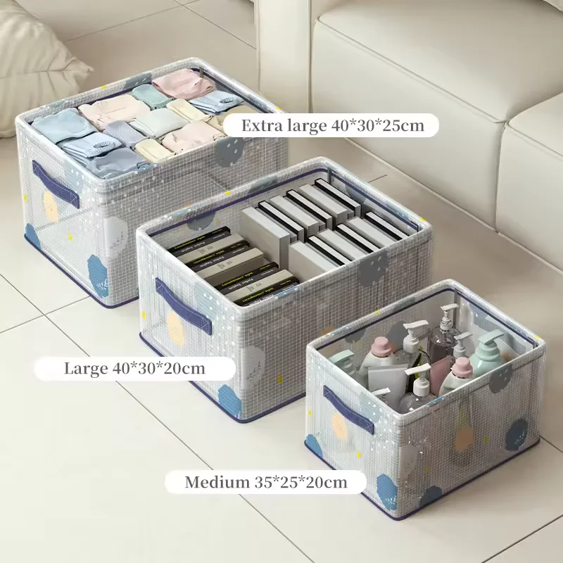 Foldable Drawer Organizer Large Size for Clothes or Socks Fabric Storage Bins with Handle Under Bed Steel Frame Storage Box