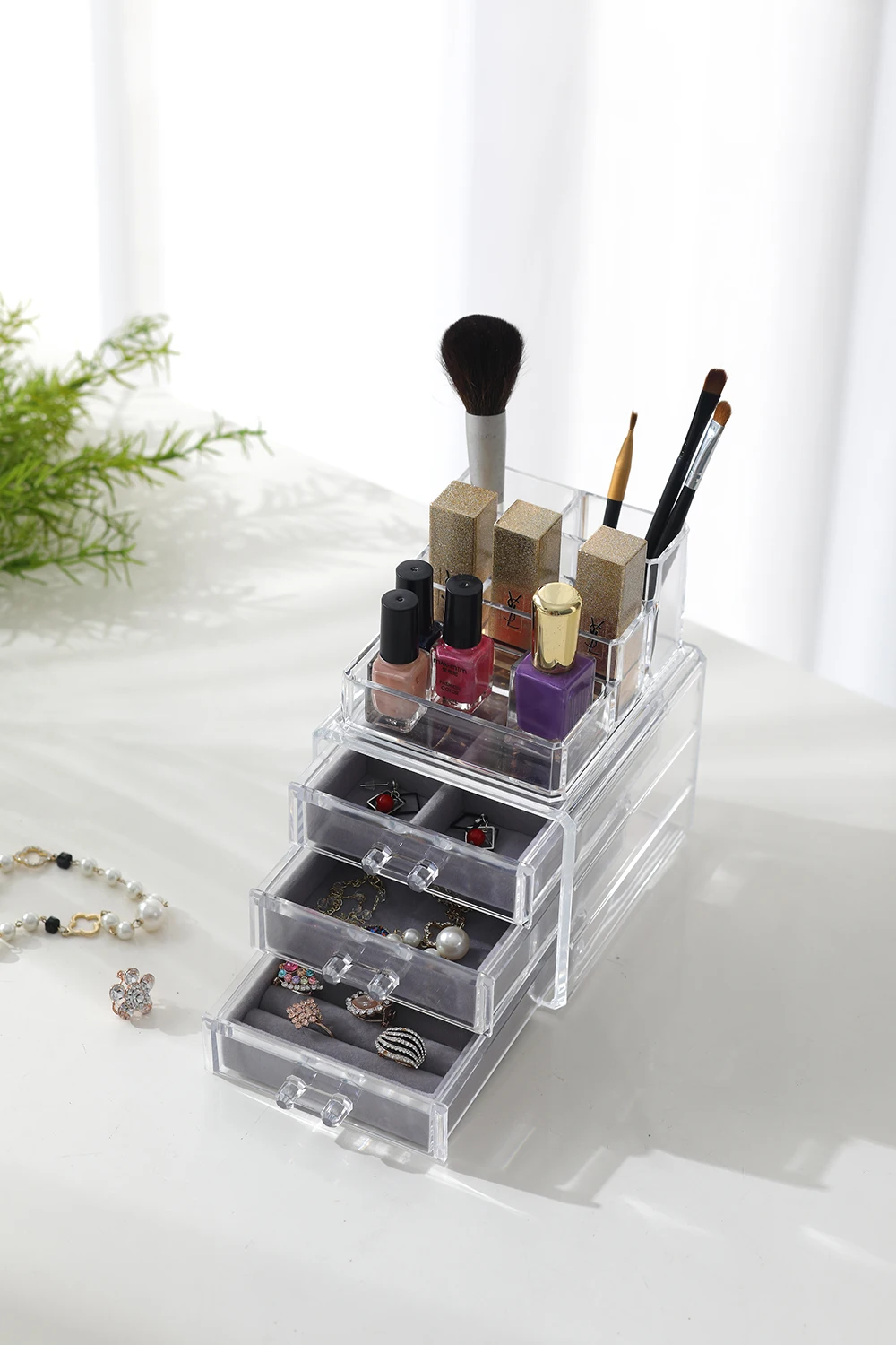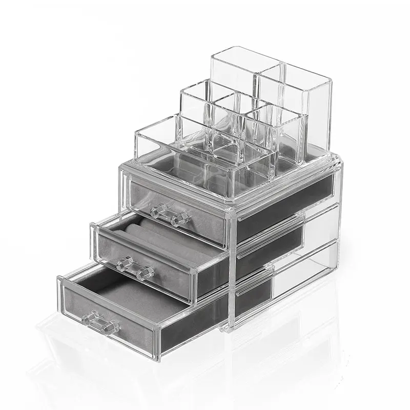 Plastic Desk Stackable Jewelry Storage Cosmetic Acrylic Box Drawer Makeup Organizer With 3 Drawers