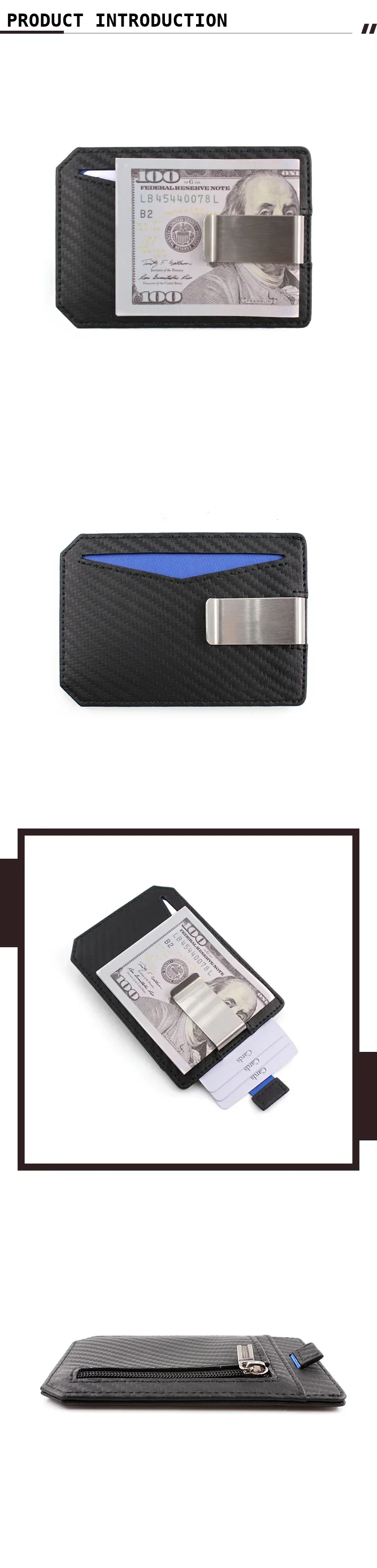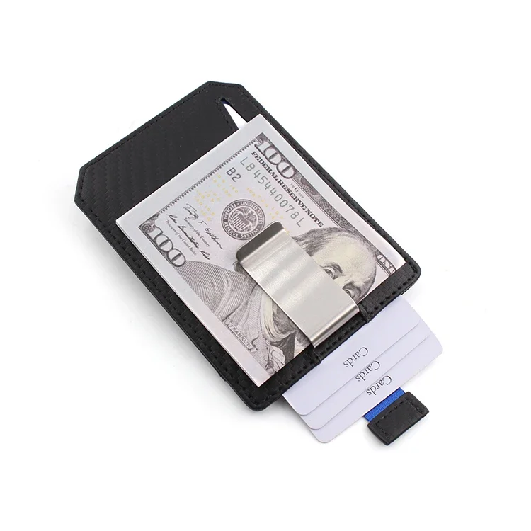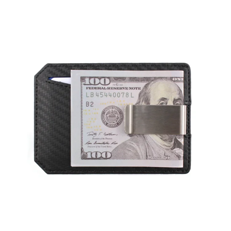 RFID Blocking Slim Design Metal Money Clip Custom Carbon Fiber Leather Card Wallet Holders