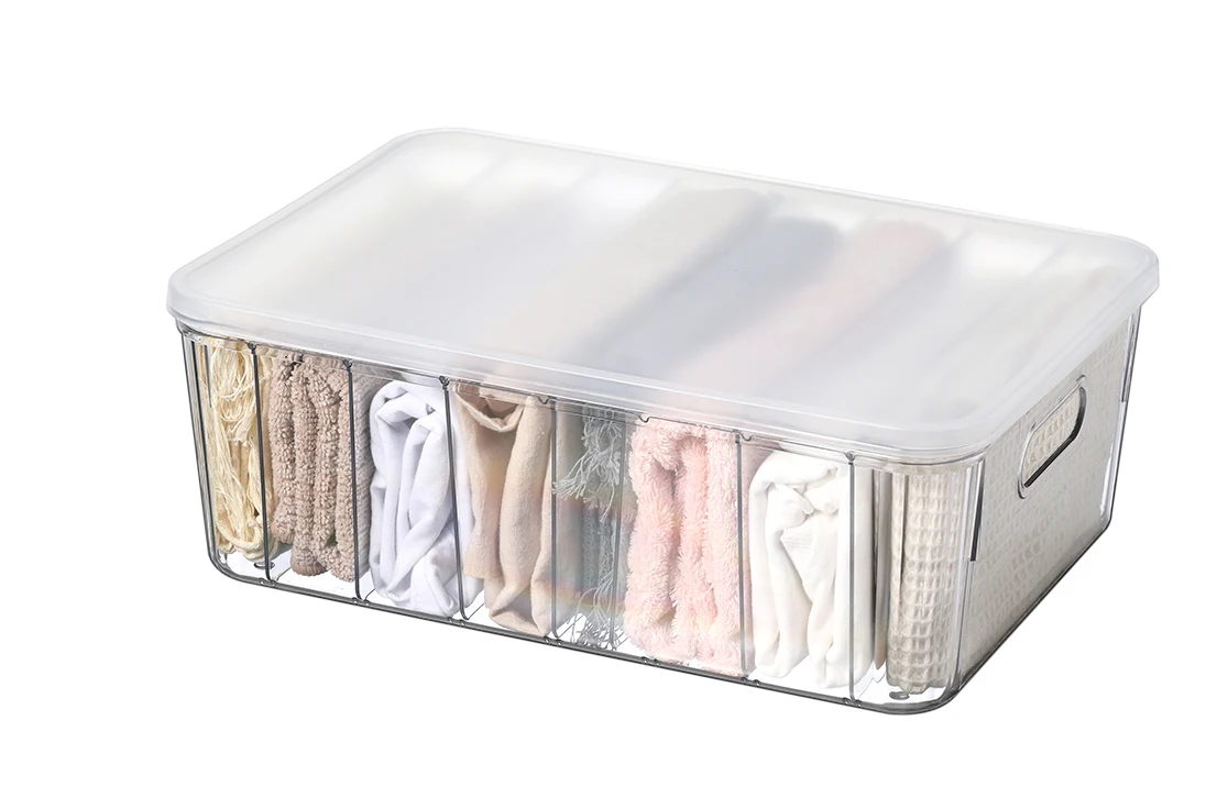 Hot Sale Transparent Plastic PET Living Room Low underwear storage box with split space Three Colors Available