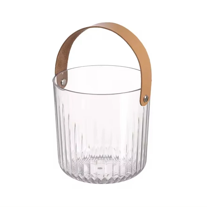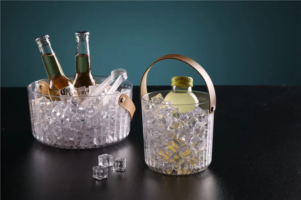 Small Portable Acrylic Wine Buckets Plastic Clear Beer Ice Bucket Multifunctional Storage Buckets With Leather Handle