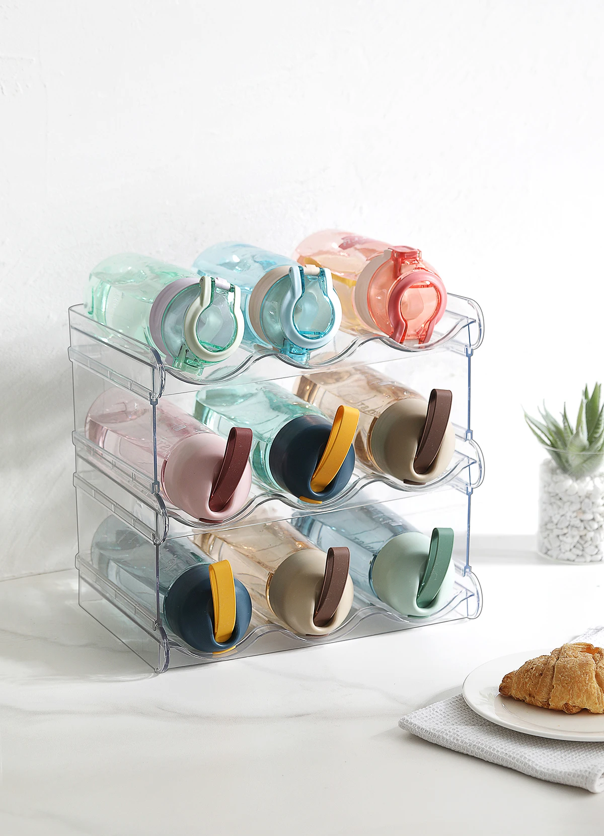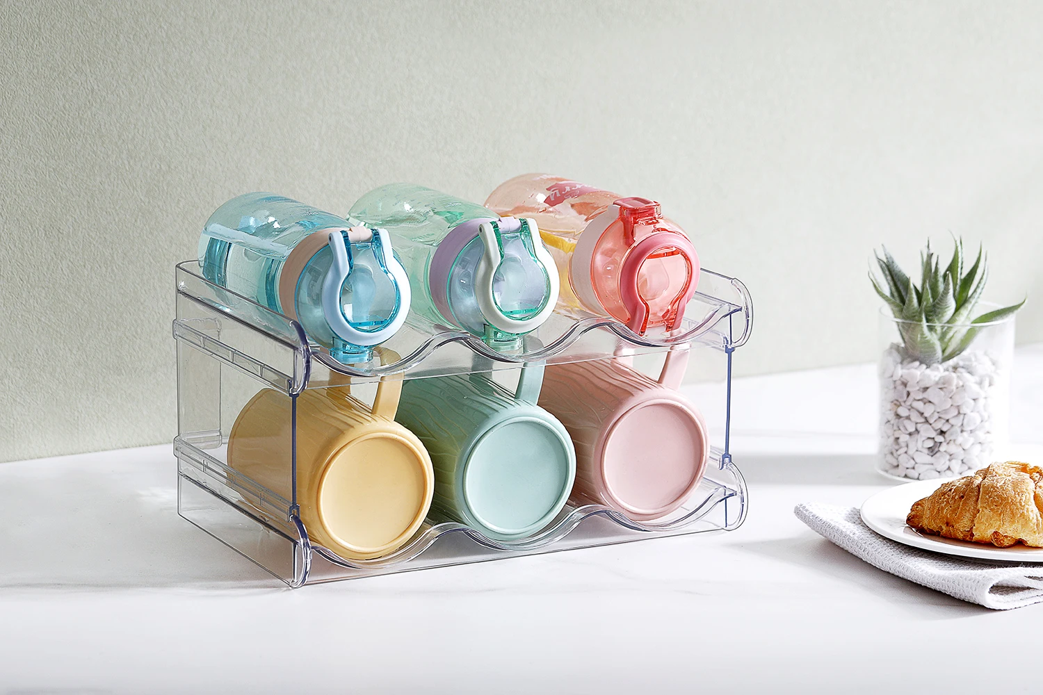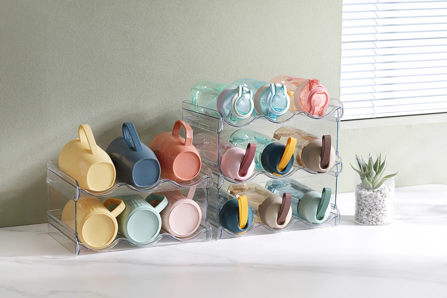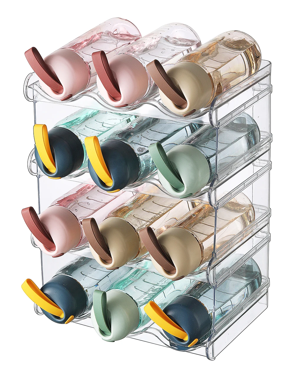 Four-Layers Durable plastic detachable stackable organizer clear free standing water cup wine storage holder rack