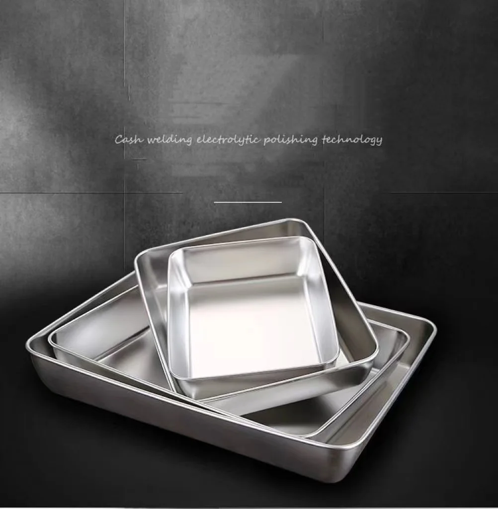 Stainless steel Square Plate Dinner Fruit Plate Dish Dessert Tableware Antique Cake Plate