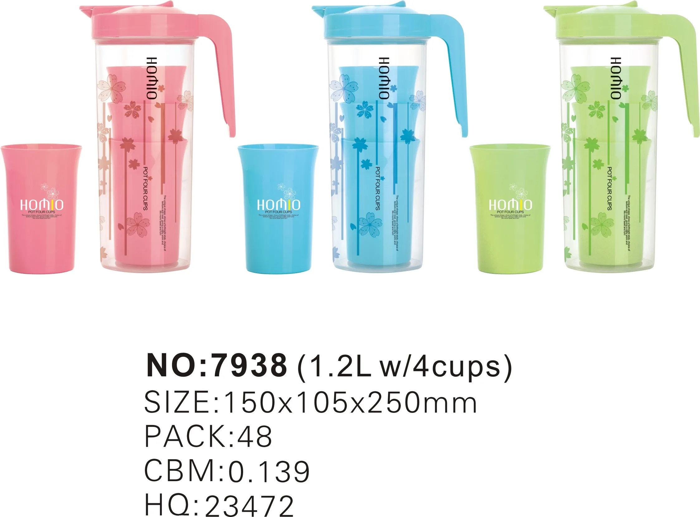 Item | 1.2L Plastic Water Jug Juice Water Kids Pitcher with 4cups inside |