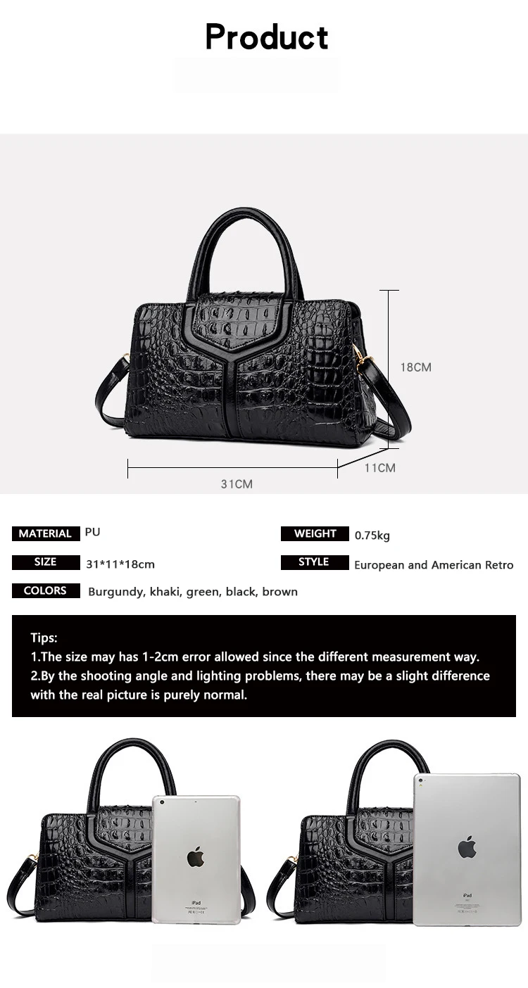 High quality women's Crocodile pattern PU leather handbag fashion women ladies PU leather shoulder hand bag for women