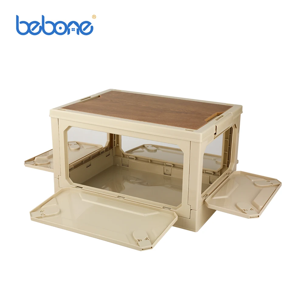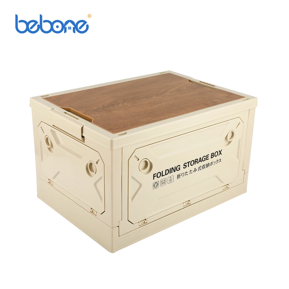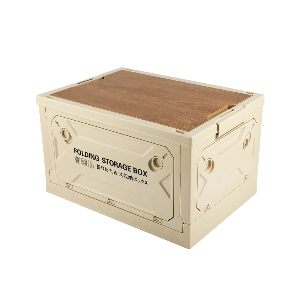 Wooden Lid Foldable Plastic Boxes Collapsible Camping Luxury Outdoor Clear Handle Folding Lid Storage Box Wood