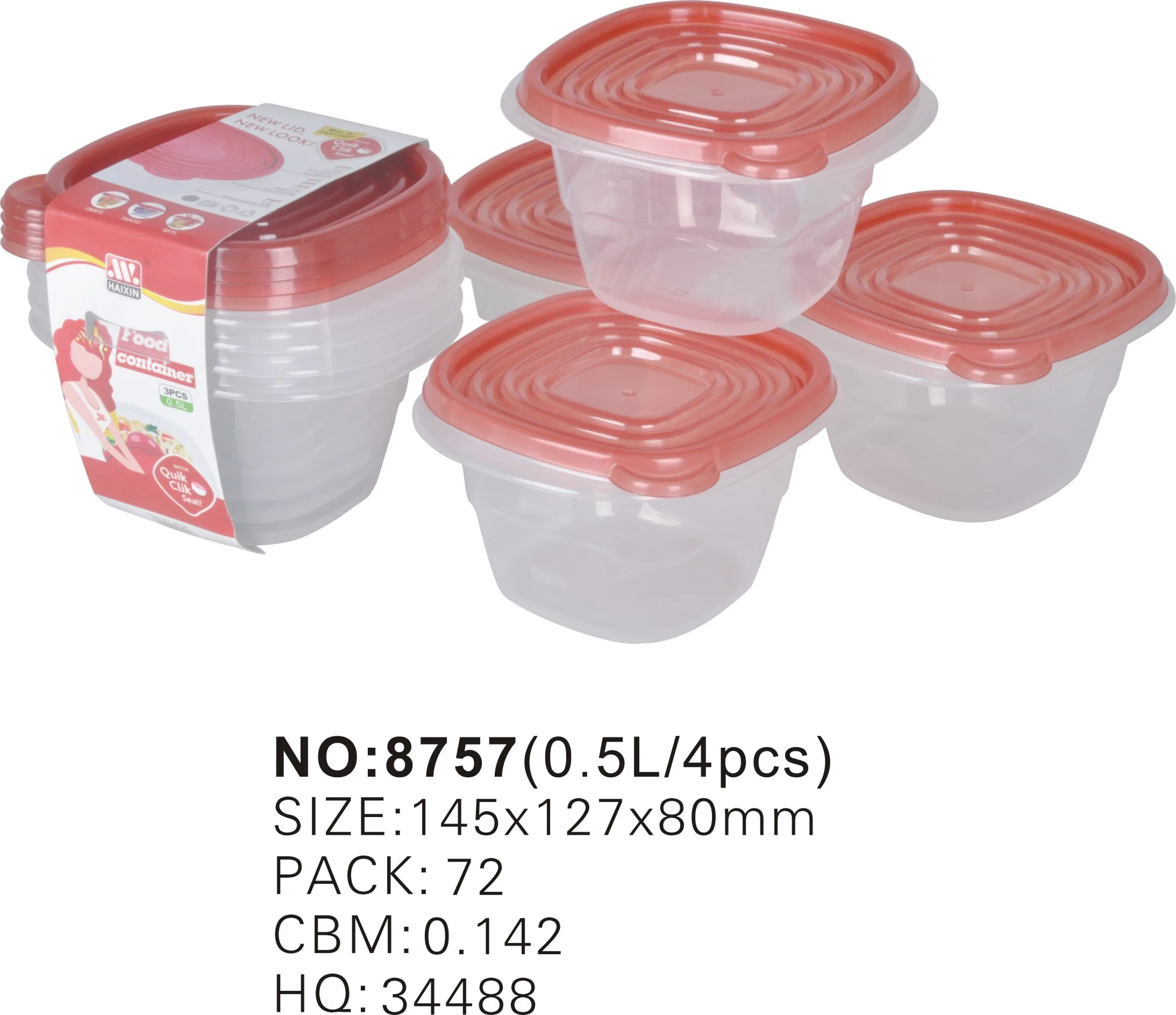 Item | 4 Pack 0.5L Plastic Food Storage Container Set |