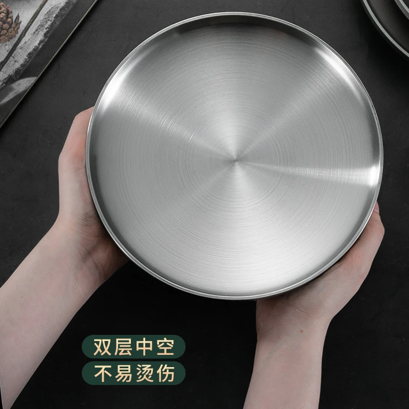 China Manufacturer Double-Wall Stainless Steel Dinner Plate Round Food Tray