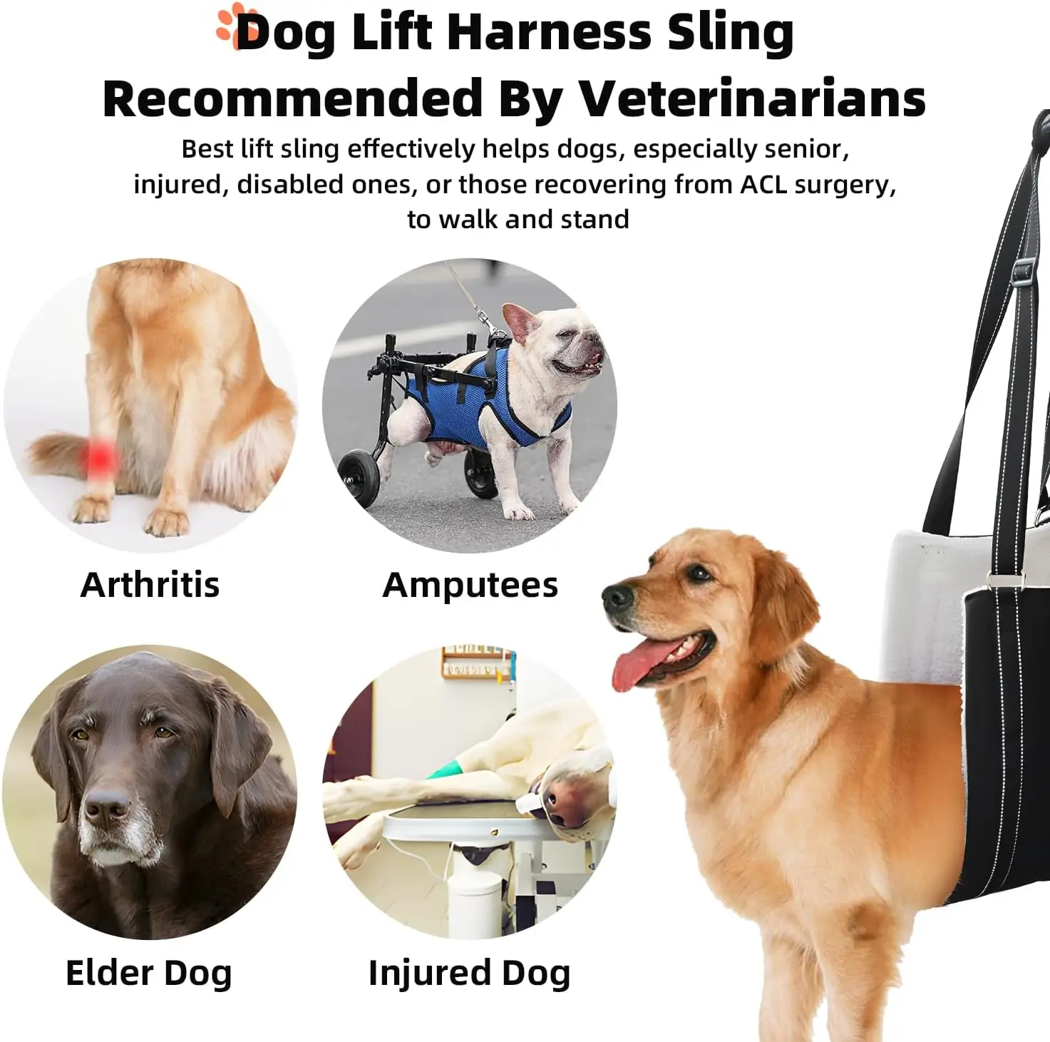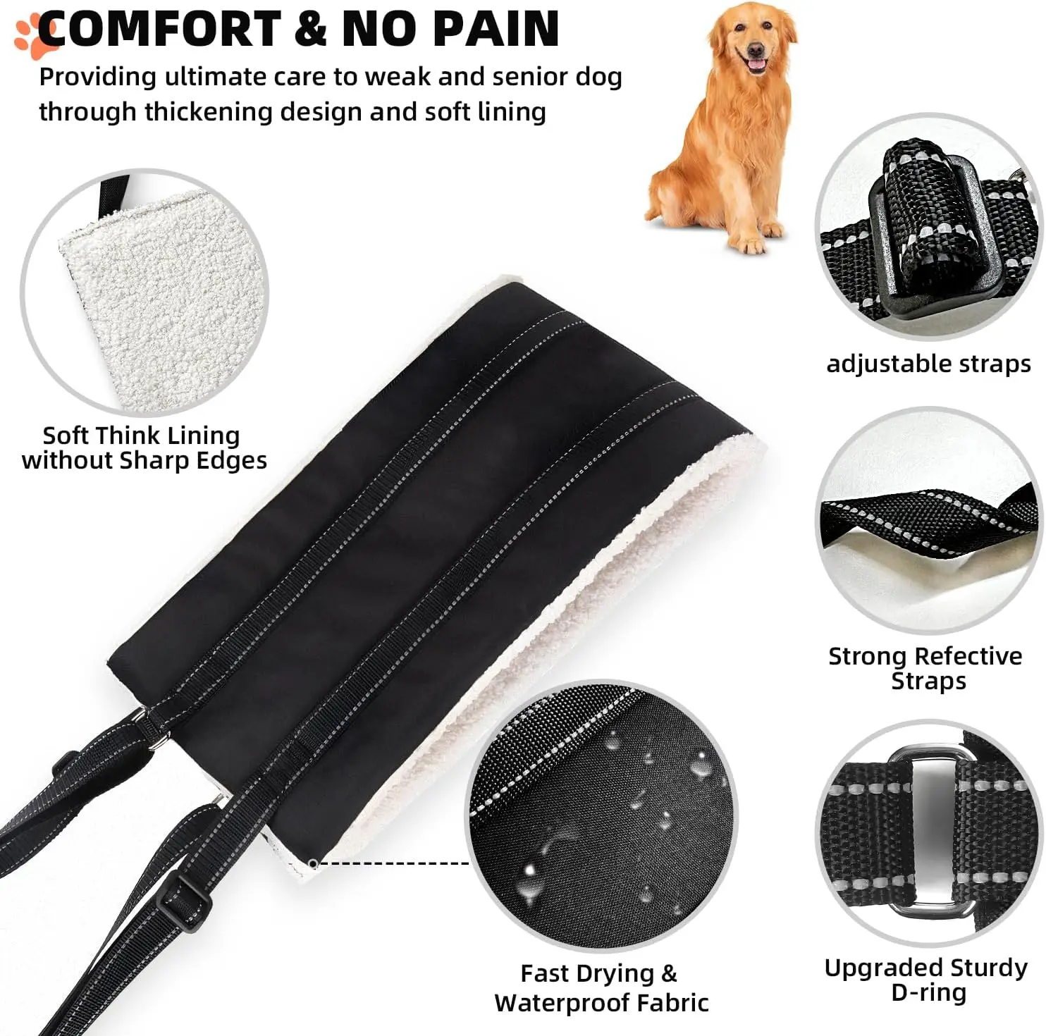 2.SOLUTION FOR MOBILITY ISSUES;This dog lift harness is design for helping a dog with mobility problems.Perfect for large dogs needing hind leg support,