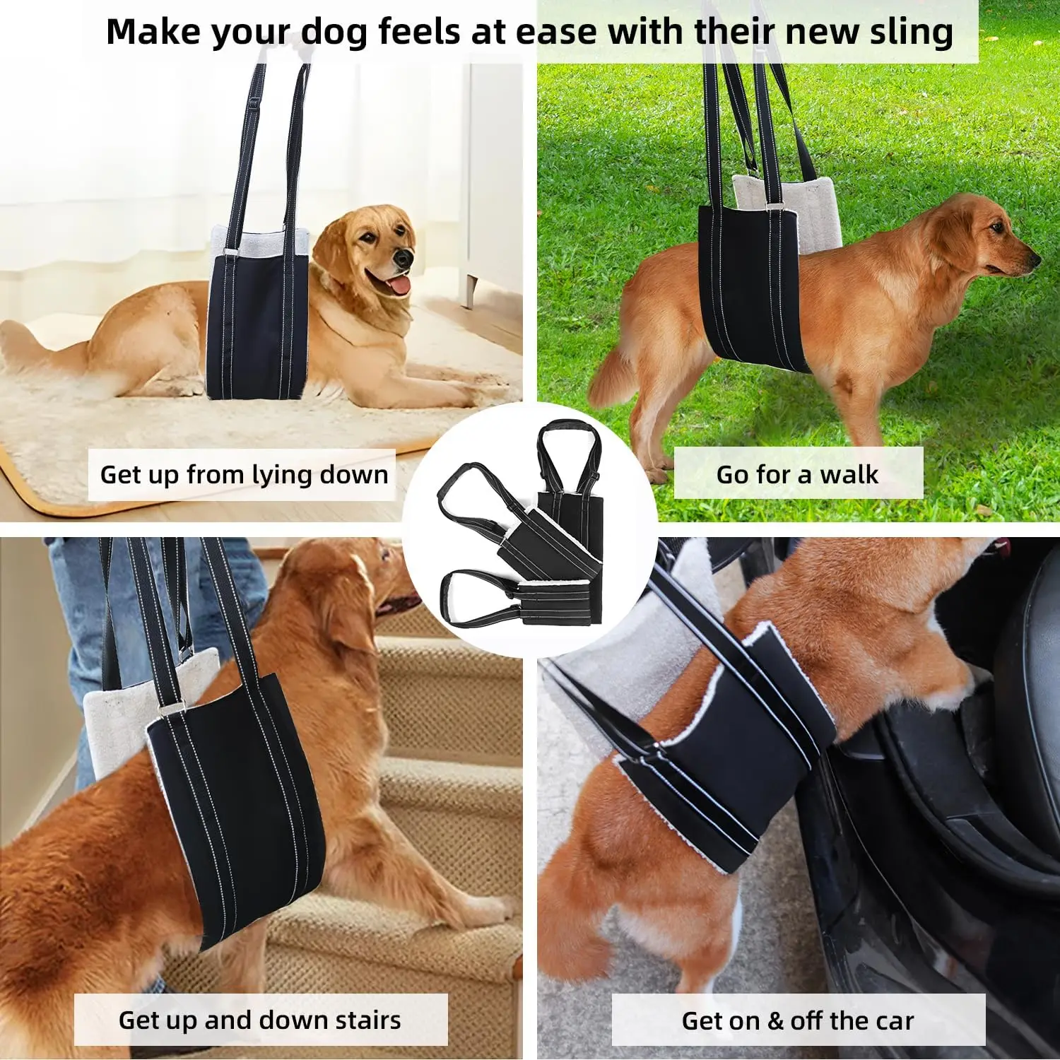 1.DOG LIFT HARNESS FOR LARGE DOG:with this dog back leg support harness help to maintain their balance and regain confidence,your lovely dogs will have their independence to do what their needs without any hindrance from the sling.like standing up to navigating stairs, getting in and out of vehicles,or simply providing assistance during walks.help them get up from lying downs